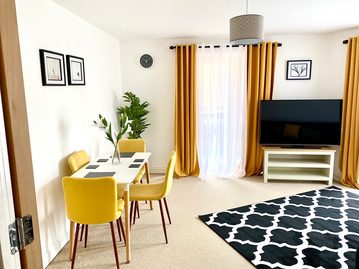 Uživajte u lakom pristupu svemu, od ovog savršeno smeštenog doma, pored tržnog centra Lakeside. Odlične veze sa više železničkih stanica u blizini. London je udaljen 20 minuta vožnje preko A13, a M25 je udaljen manje od 1 milje. Trgovački centar Blue Water udaljen samo 15 minuta vožnje. Moderan, divan, svež dvosoban stan sa potpuno funkcionalnom kuhinjom, besplatan Wi-Fi, 65-inčni pametni TV. Obezbeđeni su peškiri za tijelo. Posteljina je obezbeđena Odličan noćni život @ intu Lakeside. 1 besplatno parkirno mesto.