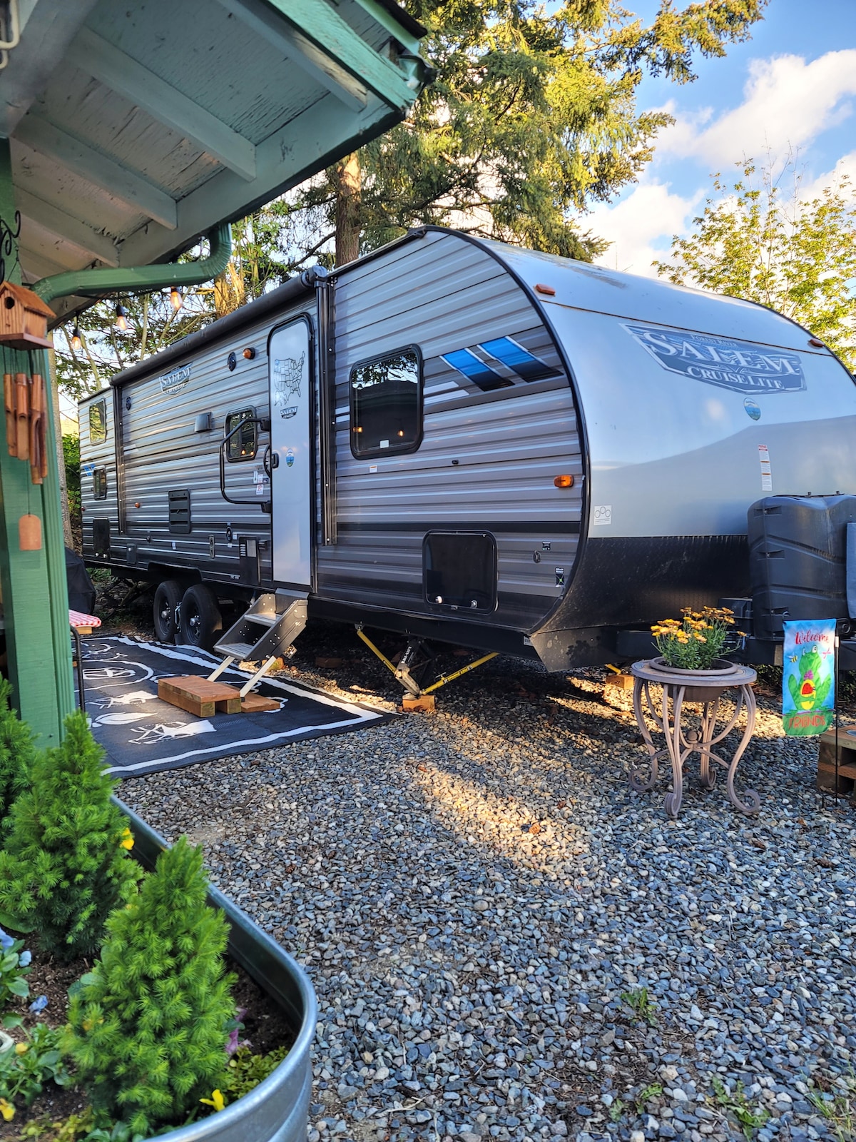 Smješteni na Pjudžet Saundu u Olimpiji (Virdžinija), uživaćete u panoramskom pogledu na vodu i planine, mirnoj četvrti, čistom i prijatnom prostoru i mnoštvu aktivnosti. Naša prikolica je Jayco JayFeather 25RB iz 2022. godine. Potpuno prekriven velikim izlazom za sto i naslonjače. Udoban bračni krevet, kompletni priključci, funkcionalna kuhinja, besplatan Wi-Fi i komunalne usluge. Kupatilo ima veliku tuš-kabinu i radni prostor u kojem možete da ustanete i pomjerite se. Samo za dve osobe, jedan prostor za spavanje, bez dece.