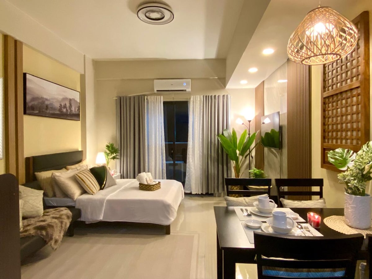 Opustite se u našem mirnom stanu Twinlakes Tagaytay, savršenom za opuštanje ili rad. Uživajte u brzom Wi-Fi-ju, zadivljujućem pogledu na planine i djelimičnom pogledu na jezero Tal s balkona - idealno za ispijanje kafe ili vina. Prostor uključuje posuđe, pribor za jelo i mikrotalasnu pećnicu za praktičnu pripremu obroka. Obezbjeđujemo sredstva za higijenu i peškire za udoban boravak bez ikakvih problema. Bez obzira na to da li ste ovdje da napunite baterije ili budete kreativni, ovo mirno utočište nudi savršen odmor.