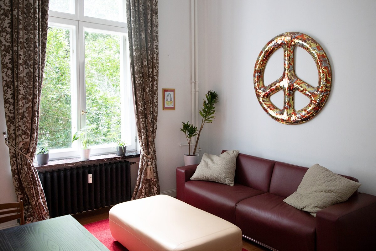 Divan mali studio (42 m2) sa pogledom na ogromni park (Tiergarten). Idealno za kraći boravak od 2 osobe. 3 km hoda od Brandenburške kapije. PREDNOSTI: besplatna parking mjesta (!) + lokacija usred parka prirode + mirno i tiho + uklj. posteljinu i peškire + fen + Wi-Fi + oprema za kuvanje + nadzemna stanica ispred kuće + moguća prijava noću + krevet za bebe + lift KONTRASI: stara zgrada -> loša zvučna izolacija - mali bračni krevet (140x200) - skup