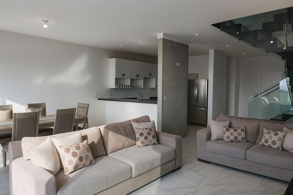 Moderna i udobna kuća na plaži! Koraci od plaže, bazena i đakuzija. To je preporučeno mesto za parove, prijatelje ili porodična putovanja (sa ograničenjem od 6 osoba, uključujući decu i posete). Vrlo blizu mesta za zabavne aktivnosti i noćni život da biste uživali sa porodicom i prijateljima (oko 1 milju od Papasa i piva). Talasi mora su iznad vas zbog blizine. Bez oklevanja, to je NAJBOLJA OPCIJA za opuštanje! Dobro došli!