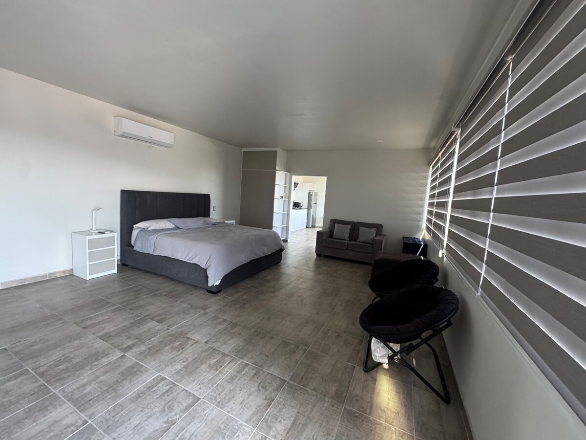 Dobro došli u svoj dom, daleko od doma! Doživite doživljaj našeg potkrovlja, osmišljenog da vam pruži udobnost i nalazi se u Zlatnoj zoni Tihuane na bulevaru Aguacaliente. Bićete na kratkoj šetnji od glavnih područja: - Zona Rio. - Područje centra grada - Aerodrom - Garita San Isidro - Cas (2 minute hoda) - Estadio Caliente. Ovo potkrovlje zadovoljava sve vaše potrebe, bez obzira na to da li ste ovdje zbog: - Posao. - Medicinski turizam. - Romantično utočište Prostor za dve osobe.