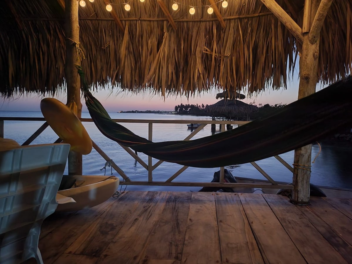 Dobro došli u našu drvenu kolibu na obali okeana koja se nalazi na predivnom ostrvu Tintipán, pravom tropskom raju, idealnom za one koji traže jedinstveno iskustvo. Ovdje ćete se buditi uz zvuk Karipskog mora, okruženi prirodom i neuporedivim pejzažima. Opremljena kuhinja vam omogućava da sami pripremate obroke ili probate lokalne proizvode i svježe morske plodove. Imaćete pristup privatnom kiosku na obali okeana, a možete se opustiti u ležaljkama, na ležajevima za sunčanje i kajacima.
