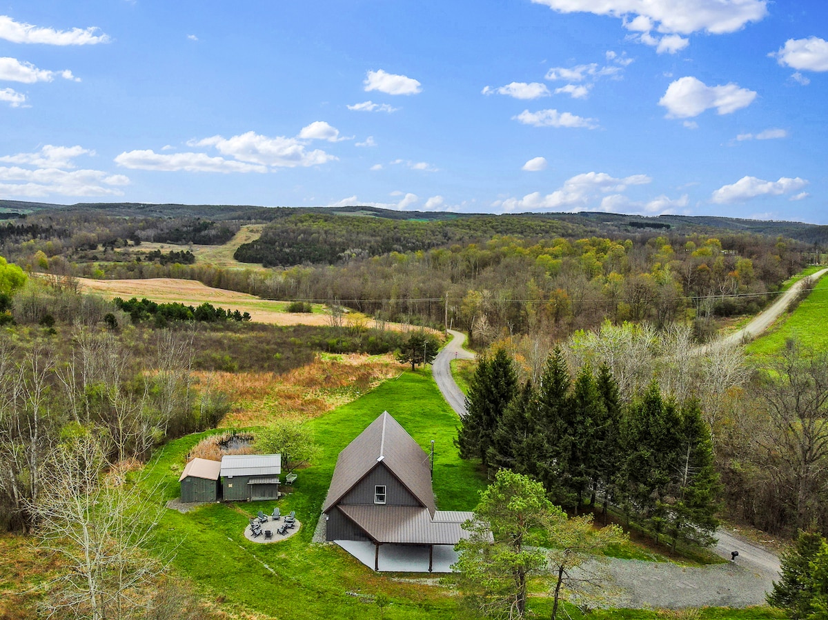 Opustite se sa celom porodicom u ovoj mirnoj seoskoj brvnari, ugroženoj u šumi severnog Pensilvanija. Uživajte u predivnom pogledu, privatnom prostoru za zabavu na otvorenom i u blizini brojnih lokalnih atrakcija. Kratka vožnja do brojnih državnih parkova, jezera i vinske staze Finger Lakes. Posmatranje zvezda je takođe dostupno iza imanja.