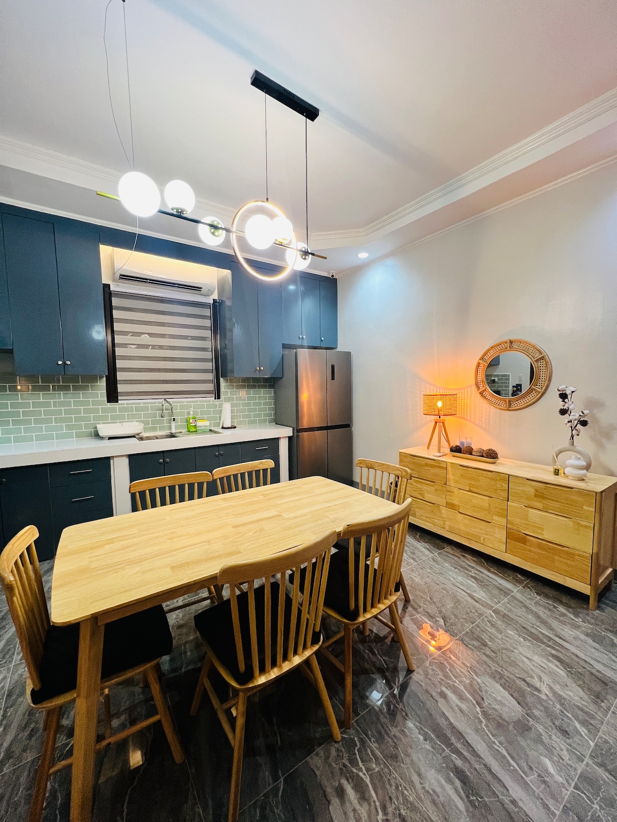 Svijetli studio inspirisan Mediteranom u četvrti Uptown Cebu's Baseline Prestige, dizajniran za lagane gradske dane i odmor na ostrvu. Probudite se u mekim priobalnim tonovima, radite na brzim vlaknima, a zatim prošetajte do kafića, tržnih centara i bolnica udaljenih samo nekoliko minuta. Udobnost u hotelskoj policiji sa praktičnim detaljima: filtrirana voda za piće, topla tuš-kada i potpuno opremljena čajna kuhinja.