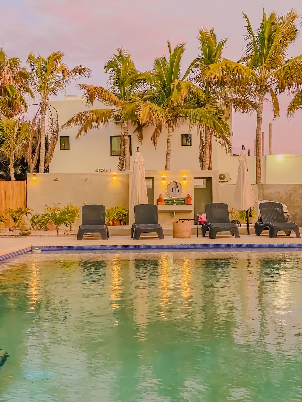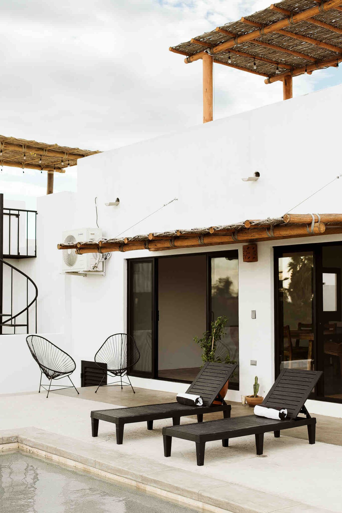 Click my profile to see all listings at Swell Todos Santos (4.97 Stars, 656 reviews) Inside you’ll find modern, airy spaces with lots of natural light and Starlink wifi. Outside you can relax in the hammock on your private rooftop balcony or kick back by the pool and gas fire pit. Our property is situated about a 7 minute walk from the beach, 1.5 miles/2.5km from downtown, and 0.6 miles/1km from a local market and a few restaurants.