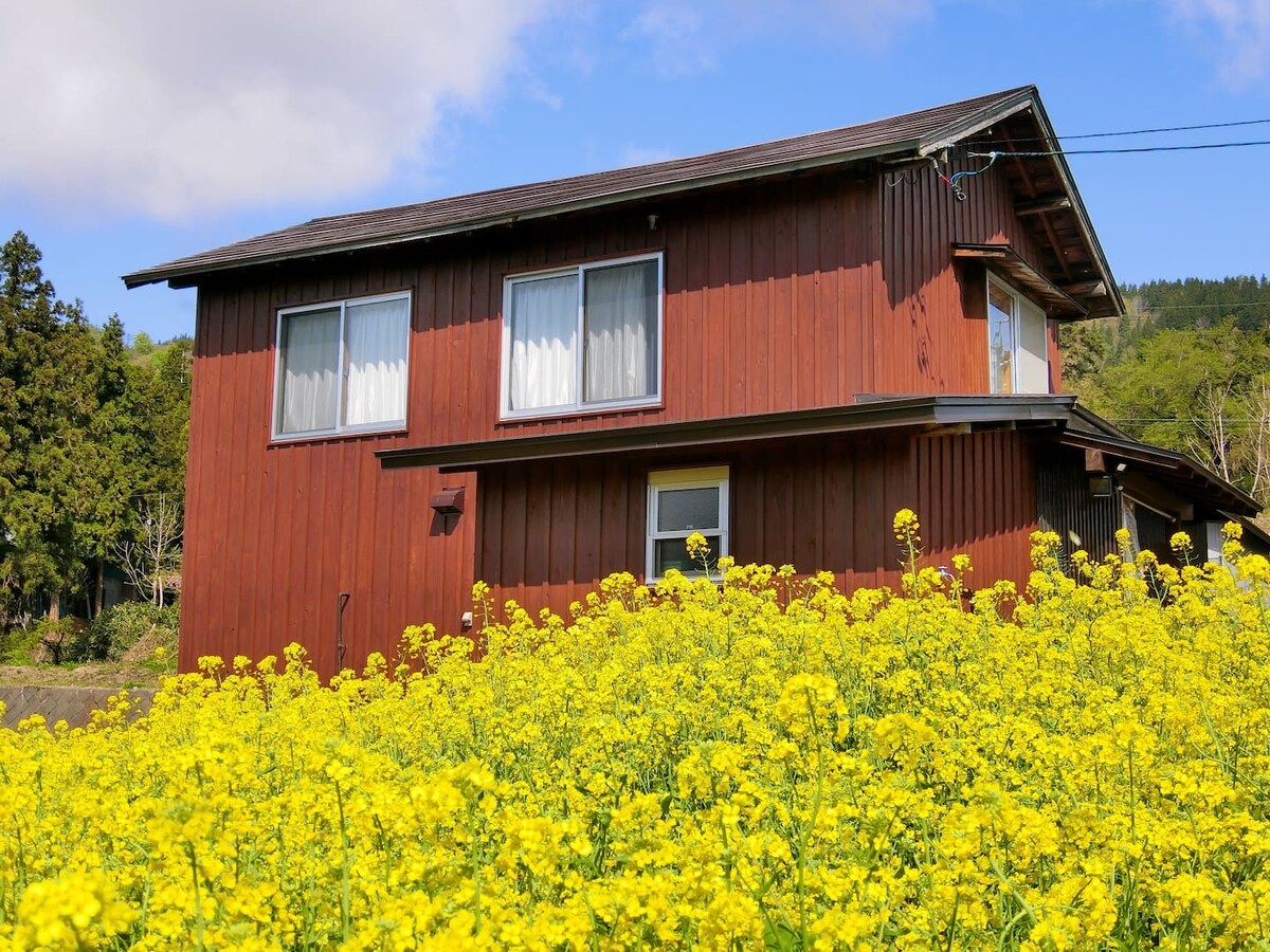 Ispred prozora, ništa nije udaljeno više od 10 kilometara.Polja za pirinač se prostiru s jedne strane, a jedna od 100 poznatih japanskih planina (1.967 m) nalazi se direktno na prednjoj strani.Ako je pravi trenutak, odatle će se izdići pun mesec. Možete se opustiti dok osećate vetar preko polja pirinča u zadivljujućem pogledu. U proleće, vodena polja pirinča izgledaju kao ogledalo, zeleno leti i zlatno u jesen.U drugoj polovini oktobra, na vrhu planine Mt. Na vrhu planine Mt. Planina Mt. Biću prekriven snegom, a sredina je prekrivena jesenjim lišćem.A zimi je prekriven snegom oko 2 metra. Polja za pirinač u pozadini su napravljena ručno bez pesticida, tako da možete da nam se pridružite tokom boravka. Wi-Fi je dostupan. Takođe imam mesta za vas da radite. Moguće je i samostalno snabdijevanje.Tu je izakaja, restoran, prodavnica, 20 minuta hoda (u krugu od 1600 m).U podrumu postoji parking mesto za jedan običan putnički automobil.
