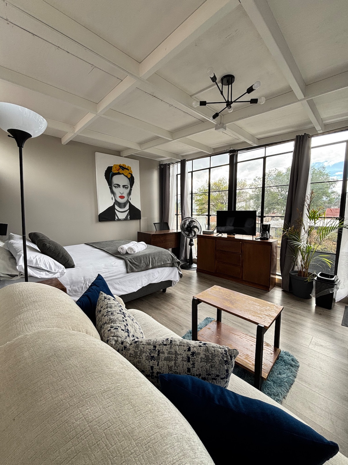 Uživajte u jedinstvenom boravku u našem udobnom potkrovlju otvorenog koncepta s panoramskim pogledom na Toluku. Uživajte u non-stop video nadzoru i na nenadmašnoj lokaciji - samo pet blokova od Vladine palate i pored tržnog centra Plaza Molino. To je savršen prostor za rad, opuštanje ili istraživanje centra Toluke, uz pogodnost da Plaza Molino bude u samoj zgradi - sa Starbaksom, bioskopom, restoranima, Oxxo, teretanom Smart Fit i još mnogo toga.