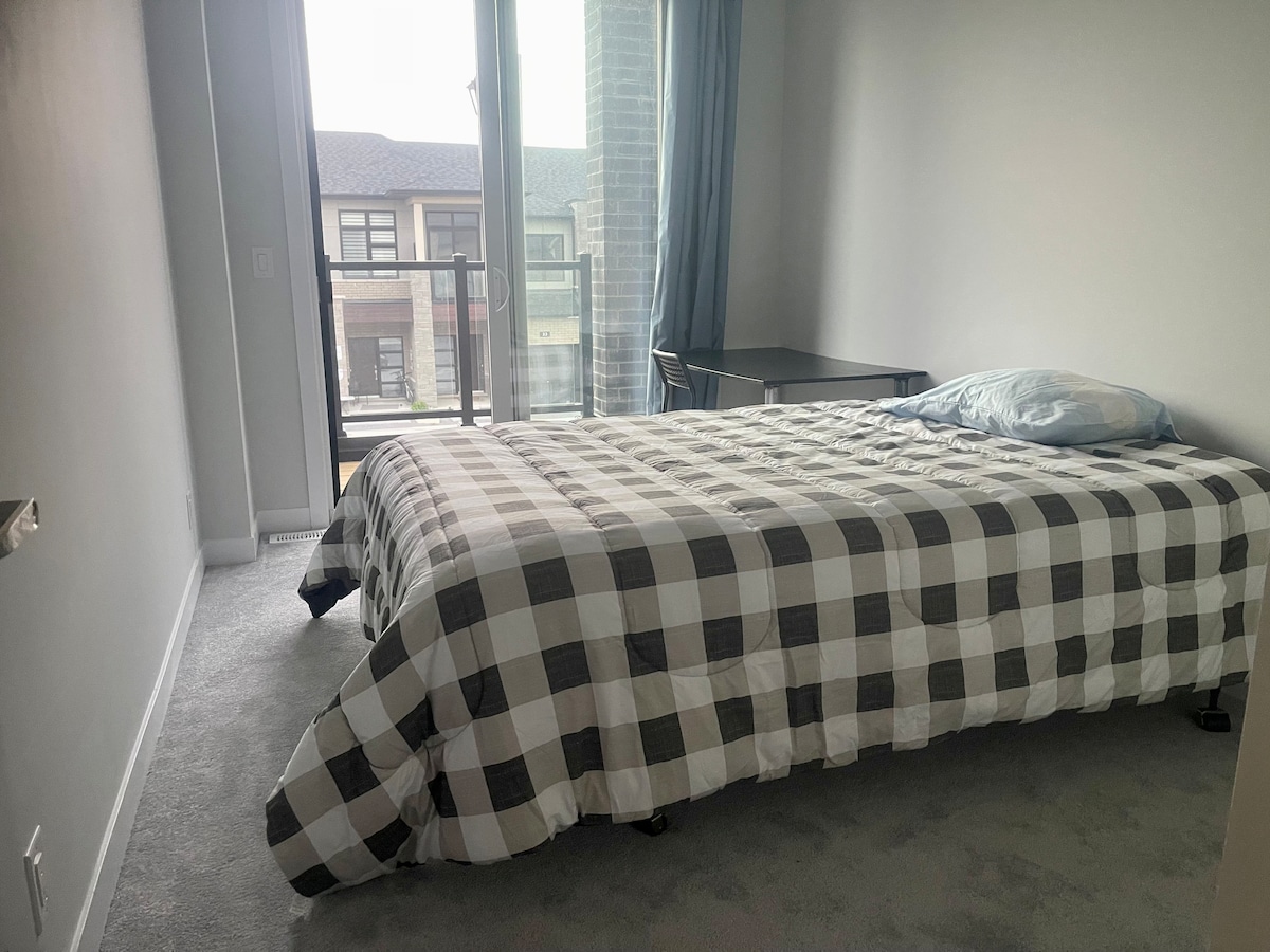 · Parking bez snega, 1 krevet, 1 kupatilo, 1 dnevni boravak, sa kompletnom vešernicom i kuhinjom, frižiderom, naravno! I sve je isključivo za vašu upotrebu! · Udobno okruženje sa bračnim krevetom (širine 150–179 cm), ugodnom atmosferom, kao i ulazom sa šifrom kako bi vaša bezbjednost bila osigurana. · Nalazi se u mirnom dijelu grada. 1 minut do šumskog parka i terena za trčanje. · Obezbeđeno je 1 parking mesto. 3 minuta hoda do autobuskih stanica. 10 minuta vožnje do autoputa 401. · Pobjegnite od gužve i opustite se u ovom vrhunskom privatnom malom stanu u podrumu.