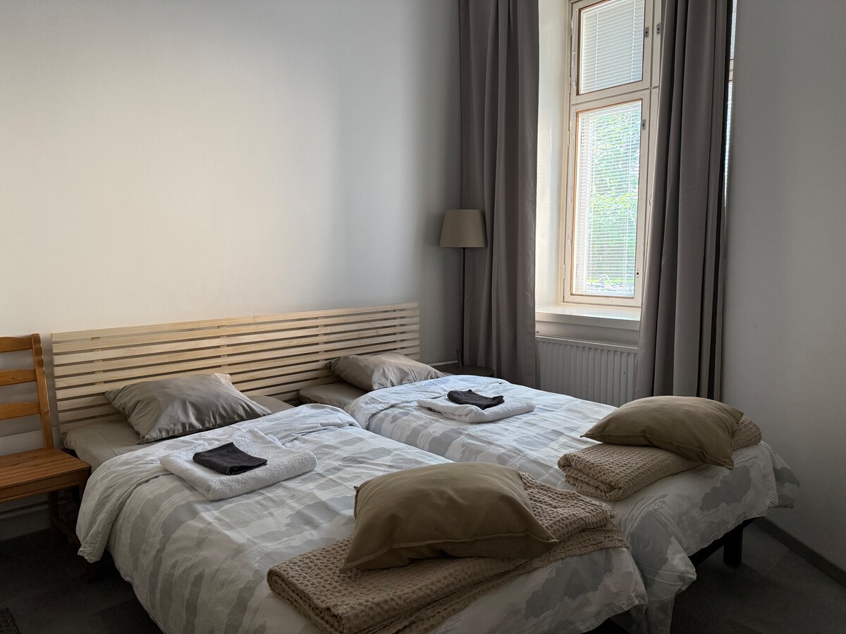 Istražite Helsinki sa najbolje lokacije! U blizini restorana, kafića u Etu-Töölö, okrugu na uzvisini. Novouređen stan sa velikim kuhinjskim ostrvom, netfliksom, podnim grejanjem i kupatilom. Pored Rok crkve i nekoliko minuta do centralne železničke stanice. ✓ podno grejanje kupatilo ✓ kompletno renoviran apartman ✓ Wi-Fi ✓ kompletna kuhinja sa ostrvom ✓ potpuno novi bračni krevet 160cm ✓ netflix sa velikim pametnim TV ✓ fleksibilnim check-in