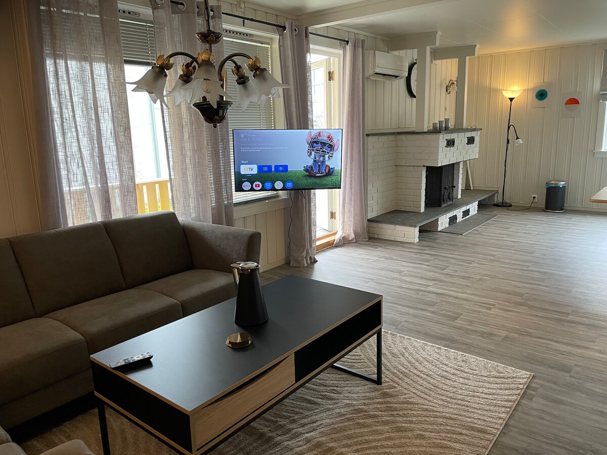 Uživajte u smještaju bezbrižno uživajući u pogledu na morski horizont. Klasična brvnara s dobrim pogledom na more i dovoljno prostora za cijelu porodicu ili nekoliko prijatelja. Večer igara s kartama, tablom ili pikadom za dodatnu zabavu. Mnogo toga možete da radite i spolja i iznutra da se opustite. Uživajte u modernoj masažnoj stolici ili se zagrijte u sauni nakon dugog putovanja. Polarnu svjetlost možete povremeno da doživite noću između septembra i marta. Razna putovanja i razne aktivnosti u blizini.