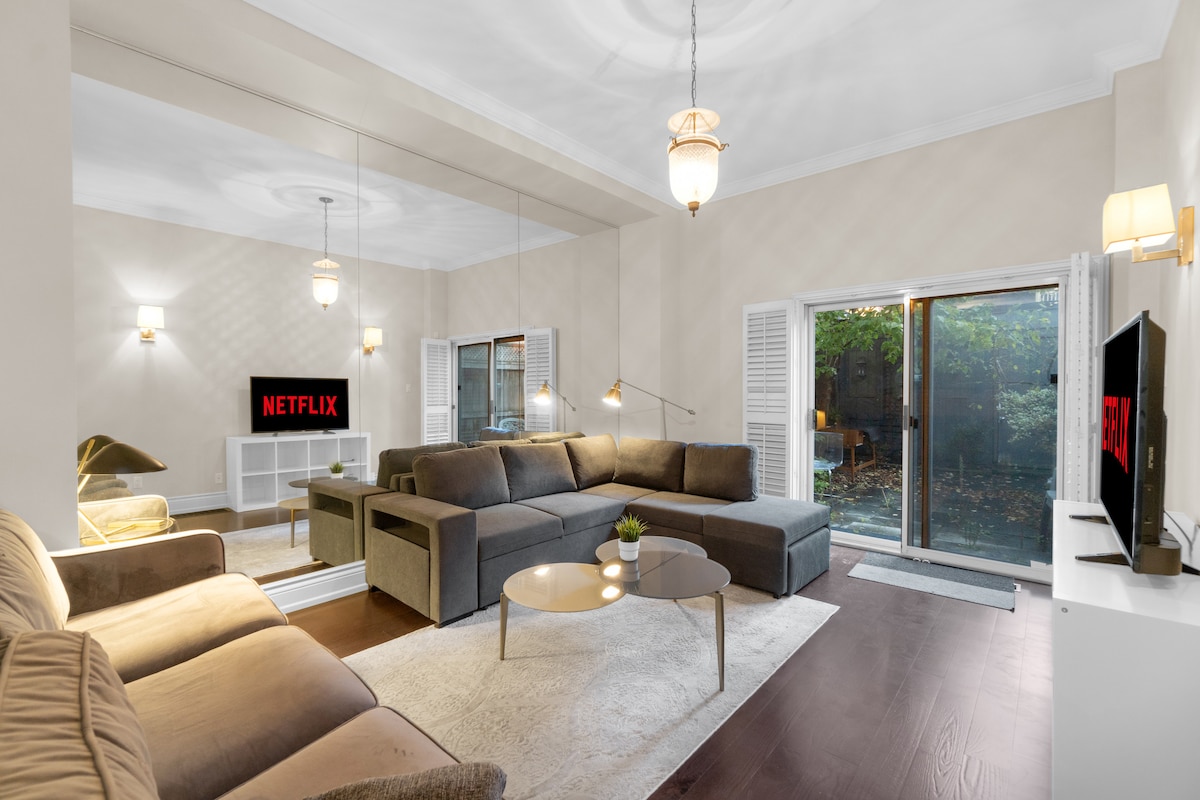 Opustite se sa cijelom porodicom u ovom udobnom smještaju u Torontu. Iako se nalazimo u mirnoj ulici sa drvećem, bićete samo nekoliko koraka udaljeni od svih restorana, kafića, prodavnica i barova u četvrti Leslivil u Torontu. U kući se nalaze 4 spavaće sobe i 2 potpuno opremljene kancelarije. Savršeno za rad od kuće!!! U kući se nalaze neverovatni trpezarijski sto, kuvarsku kuhinju i završeni podrum sa krevetom na razvlačenje i kućnim bioskopom. Nećete naći ništa slično ! 2 Parking za automobil!