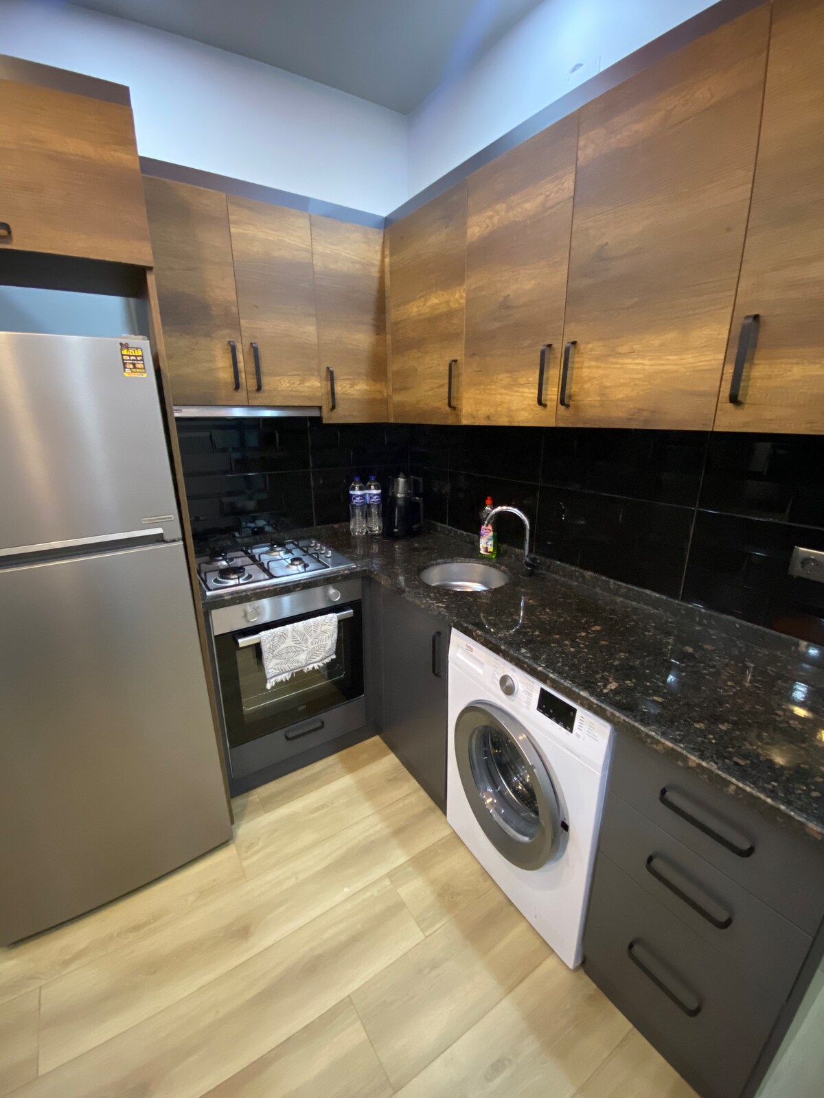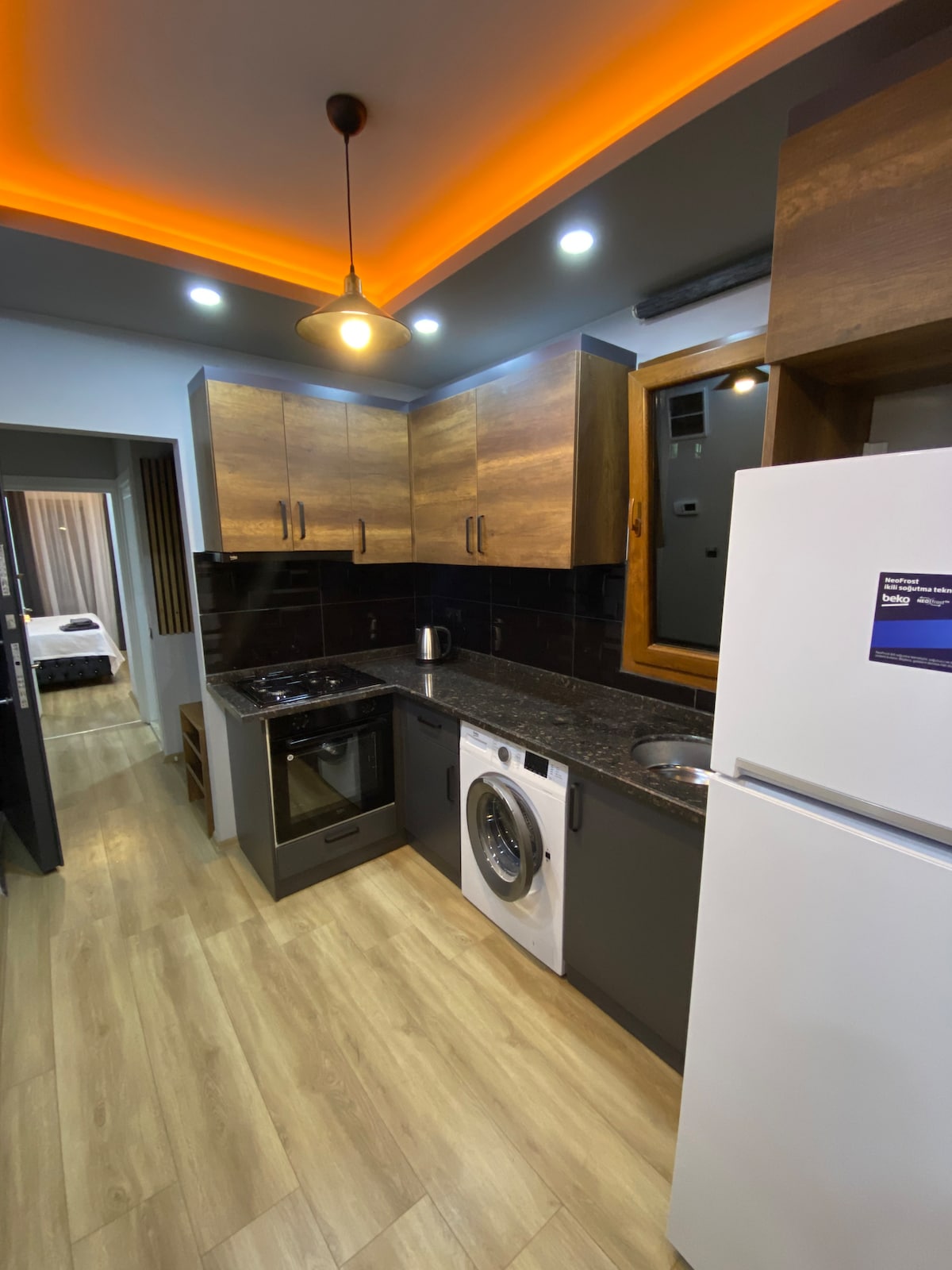 Udoban i elegantan stan 1+1 sa jednom odvojenom spavaćom sobom i zasebnom kuhinjom i dnevnim boravkom u prizemlju. Pogodno za 1-4 osobe, kao i za porodice sa decom. Postoji brzi internet i sve što vam je potrebno za boravak. Prodavnice A101 su udaljene 3 minuta hoda, a tržni centar PalmCity 15 minuta hoda. Dostupno za boravke od 4 dana do 3 mjeseca! Postoji i prevoz od aerodroma Čukurov (Mersin) do stana na zahtjev.