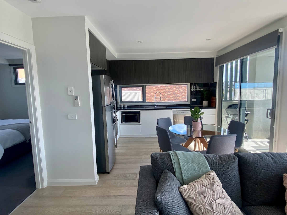 Jedan od najboljih nalaza u Torquayu, naš stan označava sve kutije! Opustite se uz malo stila i sofisticiranosti u našem super udobnom studiju, sa zadivljujućim pogledom na okean. Samo 2 minuta hoda od plaže i centra grada, imaćete sve što je potrebno za mini odmor. To je savršeno utočište za parove, romantični odmor ili idealan za samce koji žele da istraže sve što Torquay nudi. Fantastični restorani, prodavnice, kafići i plaže su vam nadohvat ruke. Uživajte u miru, stilu i opustite se!