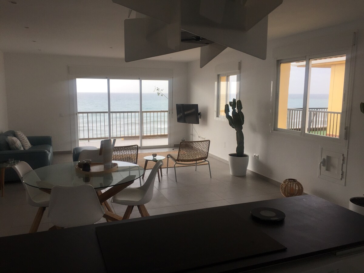 NOVI STAN na PLAŽI! Na plaži, spektakularan pogled na more, prednja terasa. Opremljena kuhinja i radni prostor u spavaćim sobama. Brzi Wi-Fi Manje od 2 minuta: supermarketi, pristanište 1,restorani, barovi na plaži,apoteka,... 10-15 minuta od ISTORIJSKOG CENTRA, Park, Katedrala, Alcazaba,Alcazaba,Mercado Atarazanas,Plaza Merced, Soho, C/Larios...