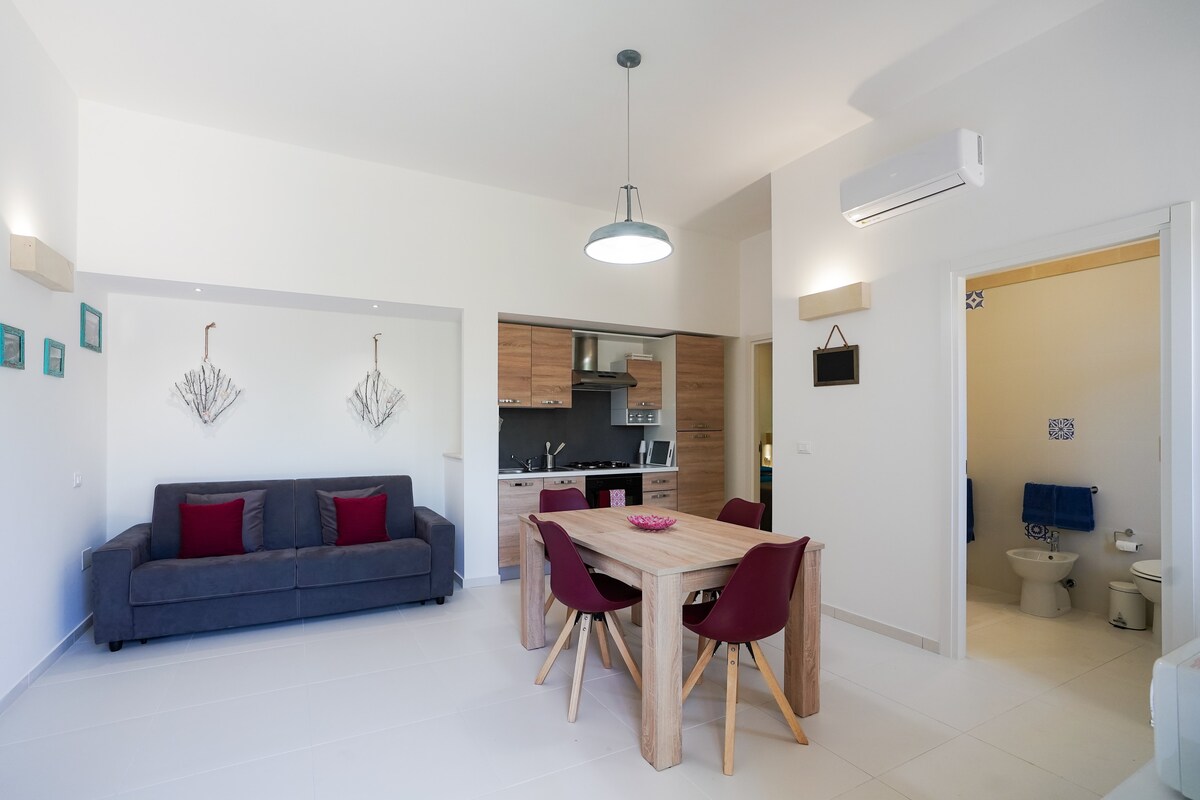 Dobro došli u apartmane Sole Luna! The Corallo apartment, located in the ground floor, offers comfort and tranquility with private parking. Samo 5 minuta hoda od zaliva Ber Tauer, ima prostranu spavaću sobu, otvoreni prostor sa potpuno opremljenom kuhinjom i udoban kauč na razvlačenje. Kupatilo s WC-om kako bi se osigurala maksimalna udobnost. Rezervišite odmah za opuštajući odmor!