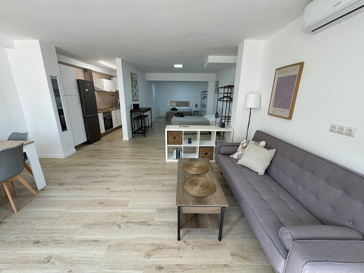 Naš stan je renoviran i dizajniran za parove, solo putnike i male grupe koje traže kvalitetan boravak u Malagi. Svaki detalj našeg doma je pažljivo razmotren kako bi našim gostima pružio jedinstven doživljaj. Opremljen klima-uređajem i brzim WiFi-om. 7 minuta hoda do Paseo Marítimo Antonio Banderas, nalazi se u području prodavnica, barova, restorana i barova na plaži. Uživajte u doživljaju.