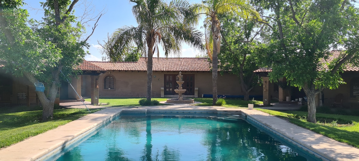 Opustite se u ovoj mirnoj i jedinstvenoj seoskoj kući koja se nalazi severno od Toreona, u blizini stadiona UAE. Samo 10 minuta od grada osećaćete se u miru ovog prostora sa bazenom, roštiljem i velikom baštom u kojoj možete da se opustite. Sadržaji bazena, palapa, roštilj i zajedničke bašte. 10 minuta od Galerias Lagune 5 minuta od Play Padel Cluba 5 minuta od JEDNOG KLUBA PADEL tačno ispred CLUBSITO Paddle and Tennis Cluba. BRZI WI-FI!