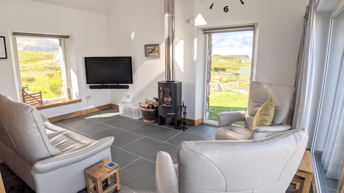 Bothan Bada is a local Rural Design R .House luxury new build holiday home located in the scenic village of Uig Bay, Isle of Skye. U blizini svih troterskih mjesta za uljepšavanje, uključujući Kilt Rock, Quiraing i u neposrednoj blizini Fairy Glen i Rha Falls. Idealno za jednodnevne izlete na Zapadna ostrva sa trajektnim terminalom 5 minuta hoda. Lokalne prodavnice, hoteli i restorani nalaze se na pešačkoj udaljenosti od kuće. Vrlo mirno sa veličanstvenim panoramskim pogledom na more/ brdo.
