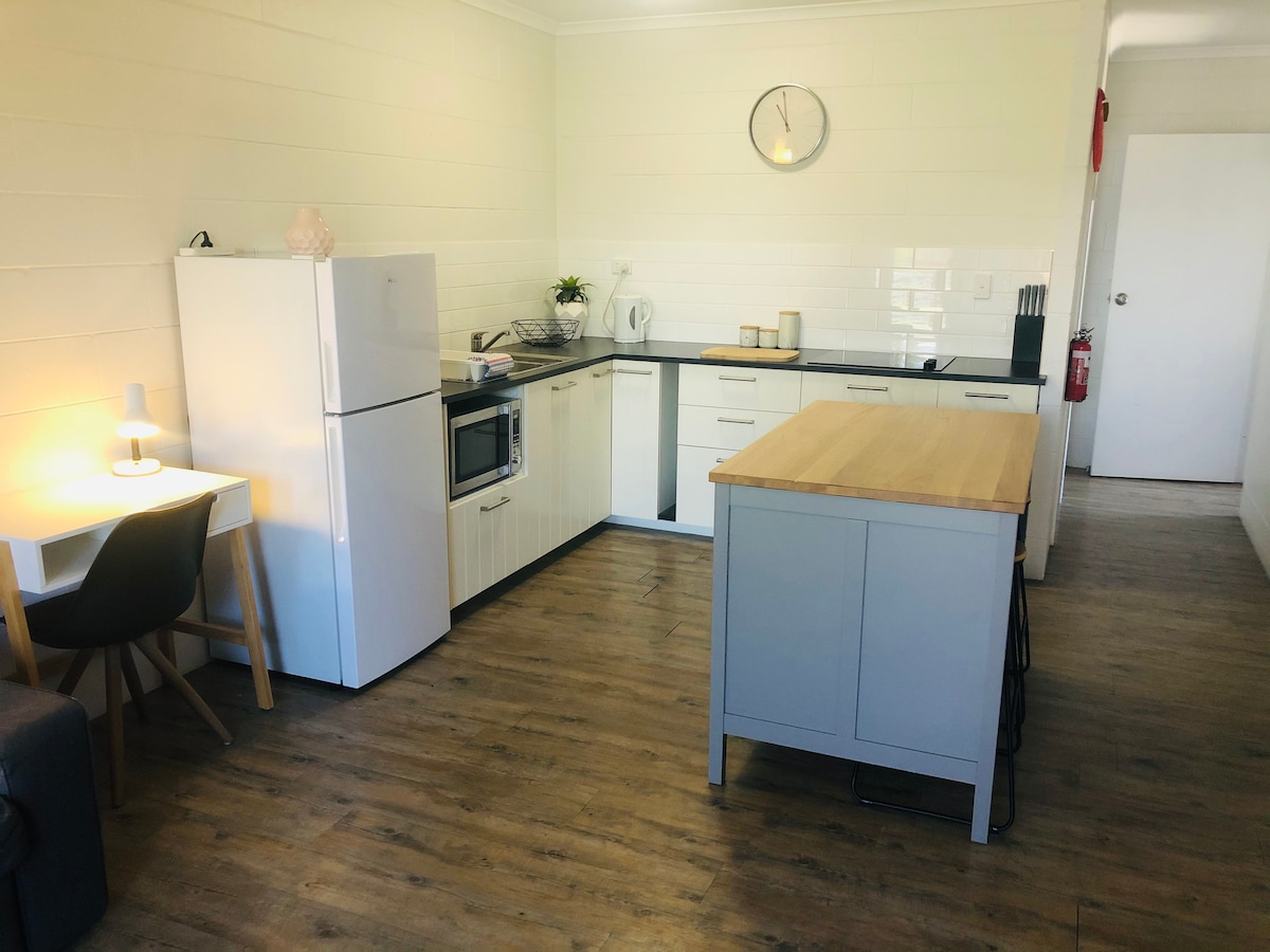 Naša udobna jednosobna butik jedinica nalazi se u podnožju Kasl Hila u Taunsvilu. Nedavno renovirana i potpuno klimatizovana sa dobro opremljenom kuhinjom sa aparatom za kafu i elegantnim dnevnim boravkom. Kratka šetnja do stadiona QLD Country Bank, City Lane, trajektnog terminala Strand & Sealink do ostrva Megi. Skuter po gradu ili se penjete se na Kasl Hil, početak staze za koze je na ulaznim vratima! Uživajte u sunčanom Taunsvilu iz srca grada