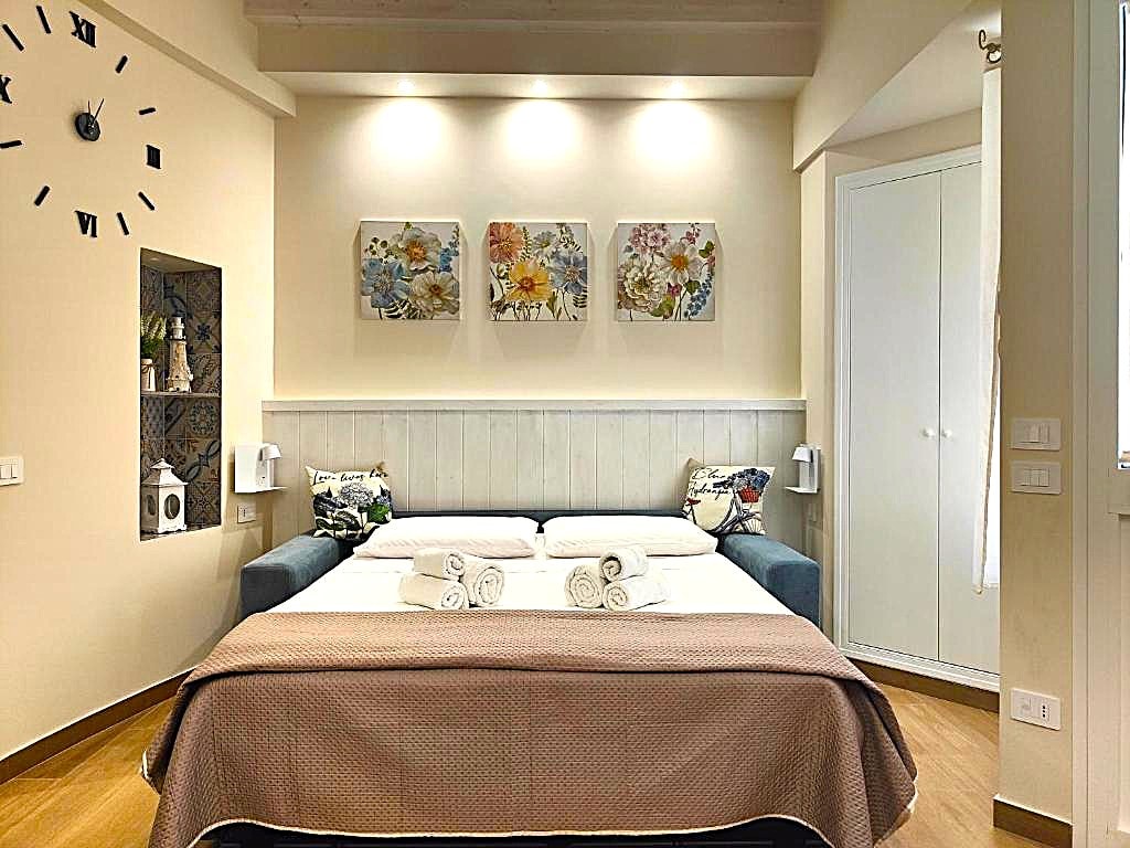 Prekrasan studio sa sadržajima i unutrašnjim dvorištem; nedavno renoviran, opremljen svim udobnostima, što garantuje tišinu i privatnost. Nalazi se u jednoj od najprestižnijih palata u istorijskom centru Tranija, nedaleko od katedrale i glavnih atrakcija grada. Stan ima: Bračni krevet (širine 125-149 cm) Wi-Fi Kuhinja sa prenosnom indukcionom pločom na 1 lokaciji Mikrotalasna pećnica Frižider Grijanje Klima-uređaj