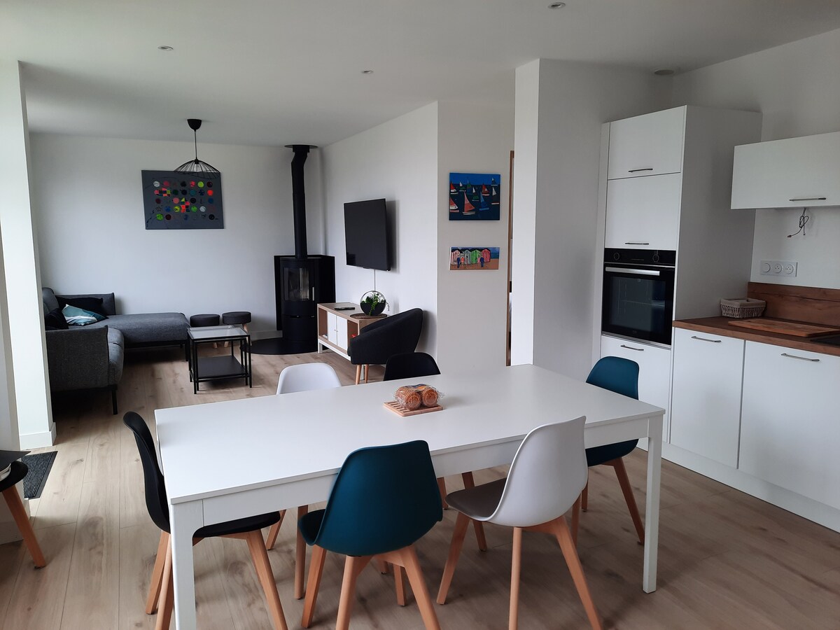 Šarmantna, potpuno renovirana ribarska kuća idealna je za porodični odmor. Smještaj za odmor 3🌟. Nalazi se na vrhu Léchiagata, 100 metara od plaže Pors Treillen i 200 metara od luke; kafići, restorani, pekara i apoteka su u neposrednoj blizini. Zatvoreni prostor za opuštanje s terasom, uključujući tuš na zadnjoj plaži preko puta uličice u kojoj se nalazi kuća. - Veliki besplatan javni parking u blizini. - 10 kilometara od mjesta za surfovanje bakljama.