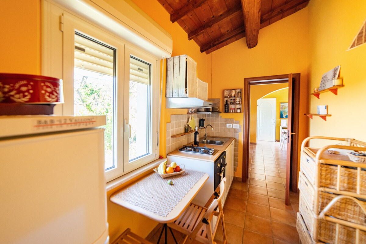 Cijeli sprat vile, tri spavaće sobe sa krevetima za jednu osobu ili bračni krevet, udobno kupatilo sa kadom i tušem, dnevni boravak sa kompletnom čajnom kuhinjom sa velikim prozorom na namještenoj terasi sa pogledom na more i okružena prelijepom borovom šumom. Jedinstvena i šarmantna lokacija u blizini najljepših uvala na ostrvu sa kristalno čistom vodom. Za 5 minuta možete doći do sela gdje možete pronaći prodavnice i druge male prodavnice. Kuća je potpuno opremljena. Stepenice za pristup.