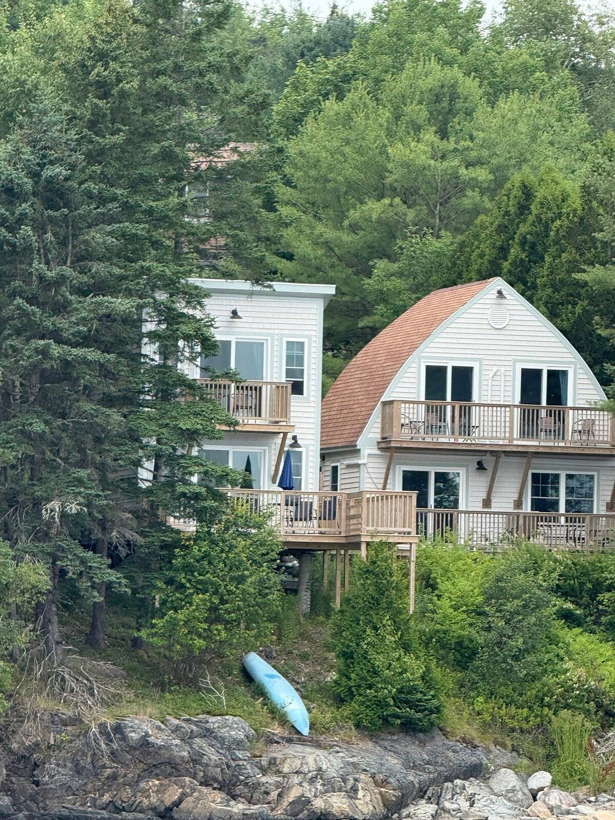 Dobro došli u svoj dom daleko od kuće! Pažnja na detalje i kvalitetne sadržaje će vas zamoliti da poželite da vaš boravak bude duži. Kuća sa kosim krovom pruža spokoj prirode tokom cele godine, bilo da uživate u prostranoj sunčanoj terasi leti ili da se udobno smestite pored vatre kada se sneg ugnijezdi u okolnim jelovim drvećem. Unutra ćete pronaći sve što vam je potrebno za udobnost i praktičnost, a avantura u Akadiji i okeanu vas čeka samo nekoliko minuta od vašeg praga.