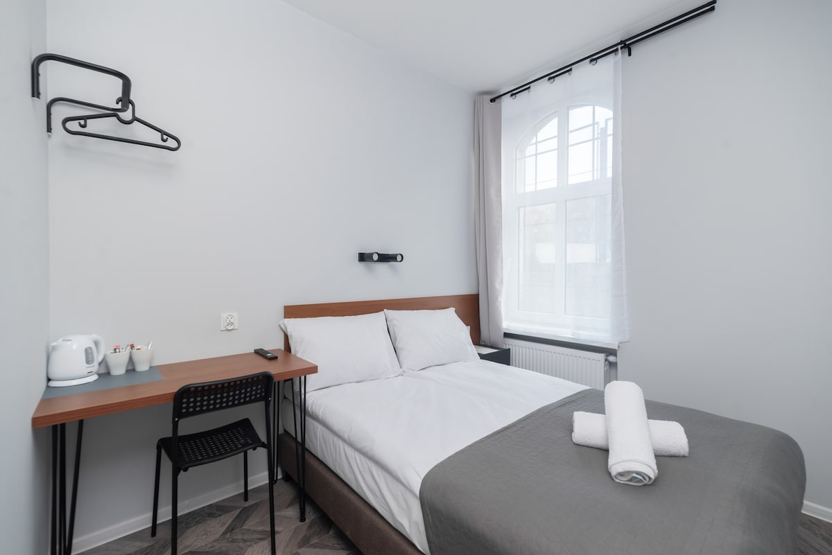 Jednokrevetna soba za kraće poslovne sastanke ili duže boravke sa krevetom dimenzija 110 cm x 200 cm. Tu su balkon, radni sto, TV, internet, kupatilo sa tušem, tušem i šamponom, peškiri, fen za kosu, voda za piće, pribor za pripremu kafe i čaja, veliki besplatan parking. Fantastična lokacija u neposrednoj blizini Tricity i mjesta za ljetnji odmor kao što su Mechelinki i Rewa.