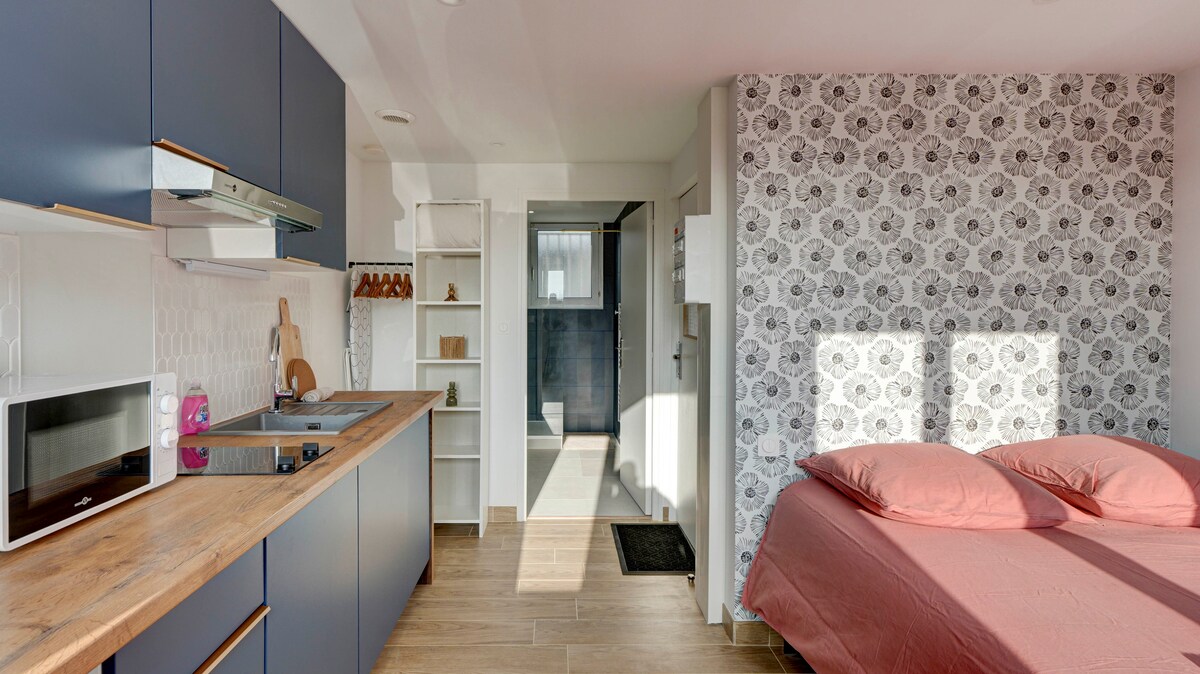 Mali studio (15 m2) pričvršćen za našu kuću sa nezavisnim pristupom i malom terasom sa pogledom na baštu. - Direktan autobus do stanice ili univerziteta, besplatan parking - Na 50 m, čuvana plaža Saint-Nazaire (najslađi sa svojim svetionikom) i bar na plaži tokom leta, staza carinika. Na 500 m, pekara, apoteka, prodavnica, cvjećara, frizera, mesara i kafića.