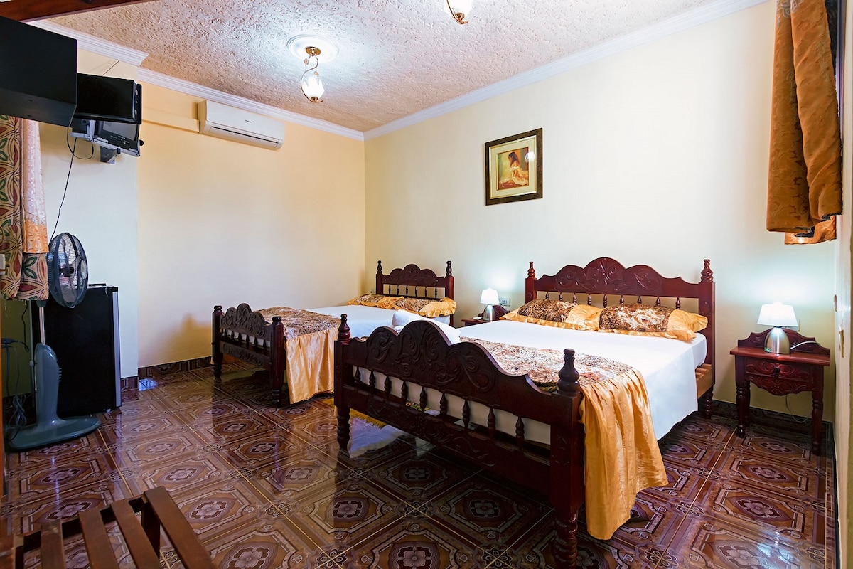 Moj smještaj je odličan za parove, avanturiste, u istorijskom centru grada. U ponudi su udobne sobe sa klima-uređajem, doručkom, tradicionalnim kubanskim i međunarodnim doručkom, ručanima i tradicionalnim kubanskim i međunarodnim jelima, kao i tradicionalna pića kao što je Canchanchara. Dočekujemo vas sa prirodnim sokovima ili kubanskim pićima. Mnogo interesovanja:Plaza Mayor. Museos,Casa de la Música, Casa de la Música, art galleries, restaurants, craft markets,banks Terminal de Ómnibus. Reserve le Esperamos