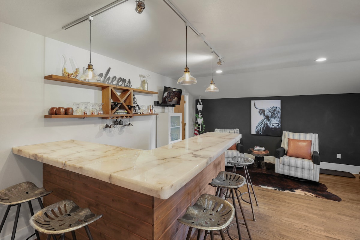 Pobjegnite u seosko utočište s predivnim pogledom na planinu. Lassen. Unutra uživajte u beskrajnoj zabavi u igraonici, opustite se u osvijetljenom baru ili se udobno smjestite pored kamina. Napolju uživajte u zvijezdama pored ognjišta ili u privatnoj hidromasažnoj kadi. Na imanju istražite pešačke staze, pecajte u barama, vozite bicikle seoskim putevima, upoznajte domaće životinje ili berite sveže sezonsko voće i povrće. Bilo da tražite aktivan odmor ili mirno utočište, ovaj objekat obećava nezaboravno iskustvo.