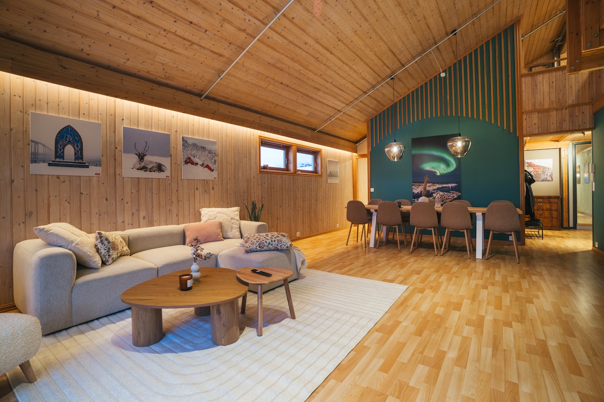 Ova spektakularna samostojeća kuća koju je dizajnirao arhitekta ima 2 parking mjesta, veliku kuhinju, 2 dnevna boravka, 4 spavaće sobe sa bračnim krevetima, 2,5 kupatila i 3 osunčana spoljna prostora sa sobom za do 8 osoba. Smještaj je okrenut prema jugozapadu i ima ukupno 180 m2. Ima moderan, svijetao i udoban, skandinavski stil. Odavde možete uživati u veličanstvenom pogledu na zadivljujuće planine i more, kao i u spektakularnom svjetlu koje imamo na sjeveru, tokom cijele godine. Kratka udaljenost do prelijepe staze za skijaško trčanje Prestvannet (brdo za planinarenje i sankanje), centra grada i aerodroma.