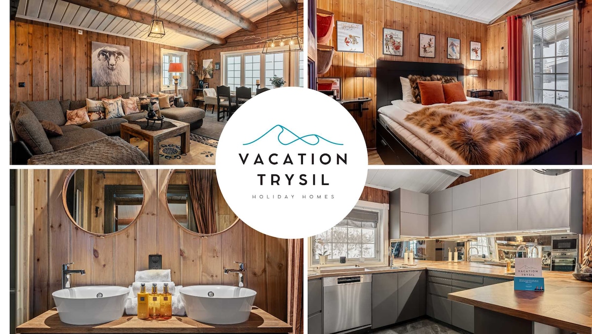 Luksuzna brvnara s panoramskim pogledom u mirnom području brvnare na Bjønnåsen, Trysil. Savršeno za porodice i odrasle prijatelje koji vole hranu/ vino u kombinaciji sa doživljajima u prirodi. Brvnara je dobro opremljena i ima privatnu kuhinju nakon skijanja i saune. Ugradili smo najbolje dušeke iz Jensena u sve krevete. Tu su i montirani zvučnici kojima se može upravljati pomoću Sonos-a u dnevnoj sobi 1, dnevnoj sobi 2, kuhinji, kupatilu na spratu, sauni i nakon skijanja. Jacuzzi se može iznajmiti za 2.500 NOK po rezervaciji, obavijestite nas o tome prije dolaska.