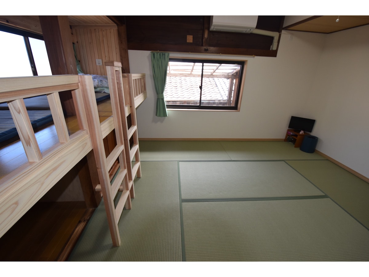 drago mi je što smo se upoznali.To su vlasnici, Tacuja i Juka. Ovo je gostinjska kuća s pogledom na more Cušime, koja je otvorena u januaru 2025. godine renoviranjem stogodišnjeg skladišta.Uživajte u toplini drveća, toplini ljudi i domaćoj atmosferi Cušime. Ova soba je zajednička soba sa 6 privatnih kreveta potpuno odvojenih kao hotel u kapsuli. U objektu se nalazi kafić i bar, gdje možete uživati u ukusnoj kafi ujutro i danju, koktelima u ruci noću i družiti se sa mještanima i putnicima. Tokom dana možete da se opustite u malom uzdignutom prostoru u zajedničkom prostoru sa velikim prozorima koji gledaju na more.Uveče možete da gledate filmove na velikom ekranu i uživate u društvenim igrama kao što su Uno i Shogi. Možete i da roštiljate ribu ulovljenu ispred objekta na terasi.Mislim da ćete imati najbolje iskustvo ikada u smještaju Tsushima Water Lodge! Čajna kuhinja je potpuno opremljena IH šporetom, mikrotalasnom rernom, frižiderom i posuđem, a možete i sami da pripremate obroke. Udaljen je 5 minuta vožnje od aerodroma Cušima i 25 minuta vožnje do centra Gunbare.Jeste li spremni za opuštanje dok osjećate toplinu prirode i ljudi?