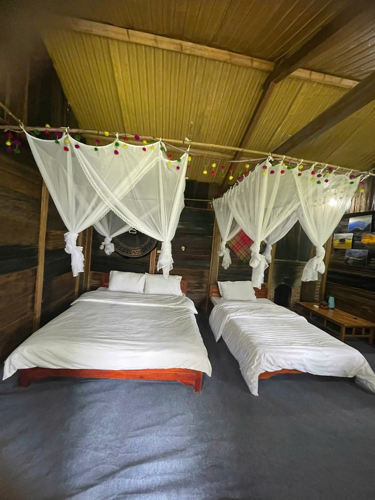Nằm nép mình bên bờ suối róc rách, homestay bằng gỗ tại bản Lướt, Ngọc Chiến là lựa chọn lý tưởng cho cặp đôi muốn tận hưởng sự yên bình giữa thiên nhiên. Thiết kế mộc mạc, hòa hợp với khung cảnh núi non hùng vĩ, nơi đây mang lại cảm giác ấm cúng và độc đáo. Chỉ cần mở cửa, bạn có thể cảm nhận hương rừng, tiếng suối và làn gió nhẹ thoảng qua. Đây là điểm đến lý tưởng để thư giãn, rời xa những ồn ào của cuộc sống đô thị.