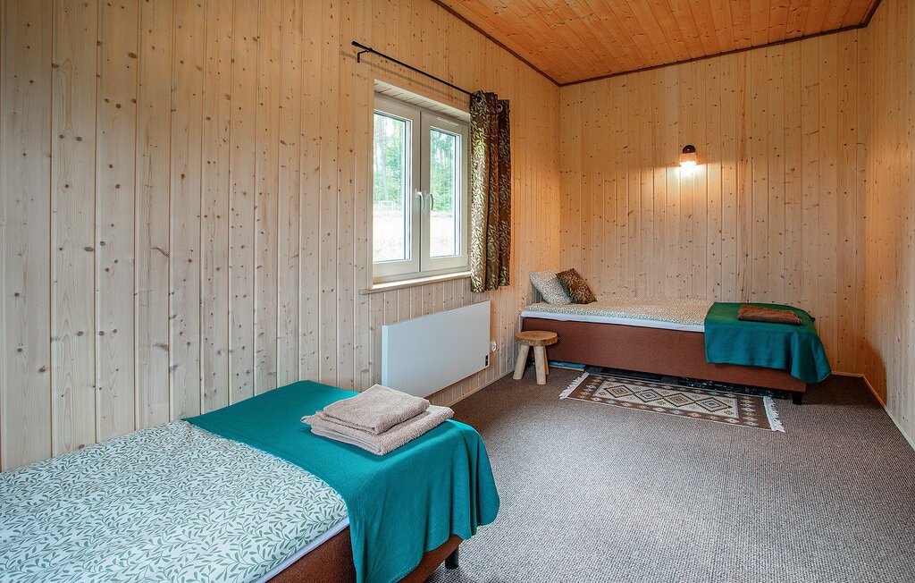 Domek jest dla osób poszukujących przygód i relaksu. Rozpocznij dzień od spaceru do lokalnego sklepu po świeży chleb, potem śniadanie w ogrodzie z owocami z sadu, huśtaj się w hamaku, posłuchaj żurawi i obserwuj ptaki, takie jak wilga. Około 3km od domku znajduje się Tleń z licznymi restauracjami, spa i wypożyczalnią kajaków. W pobliżu można również jeździć konno i zbierać grzyby. Domek pomieści cztery osoby, jest łazieneczka z prysznicem, aby mieć ciepłą wodę, należy rozpalić ogień w piecyku.