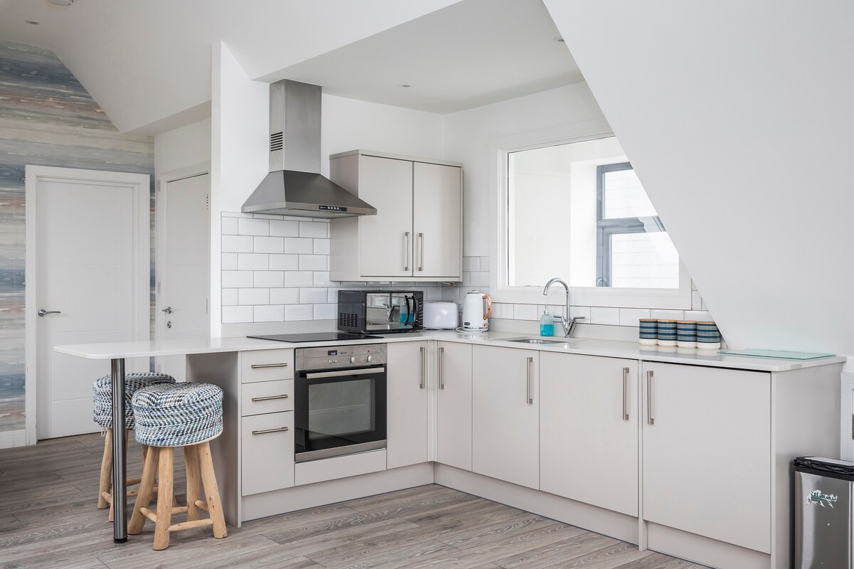 Uživajte u savršenom odmoru u ovom nagrađivanom penthouse apartmanu sa 2 kreveta i pogledom na more od 180 stepeni u srcu mirnog područja Alum Chine u Burnemutu, samo nekoliko minuta hoda od plaže. Objekat se može pohvaliti sa dve trpezarije, od kojih se jedna nalazi na velikom balkonu sa pogledom na plažu Burnemut i po mjeri šporet na drva za zimske noći. Otvorena kuhinja vodi u udobnu dnevnu sobu u kojoj možete uživati u zabavi Sky Glass TV putem super brzog Wi-Fi mreže.