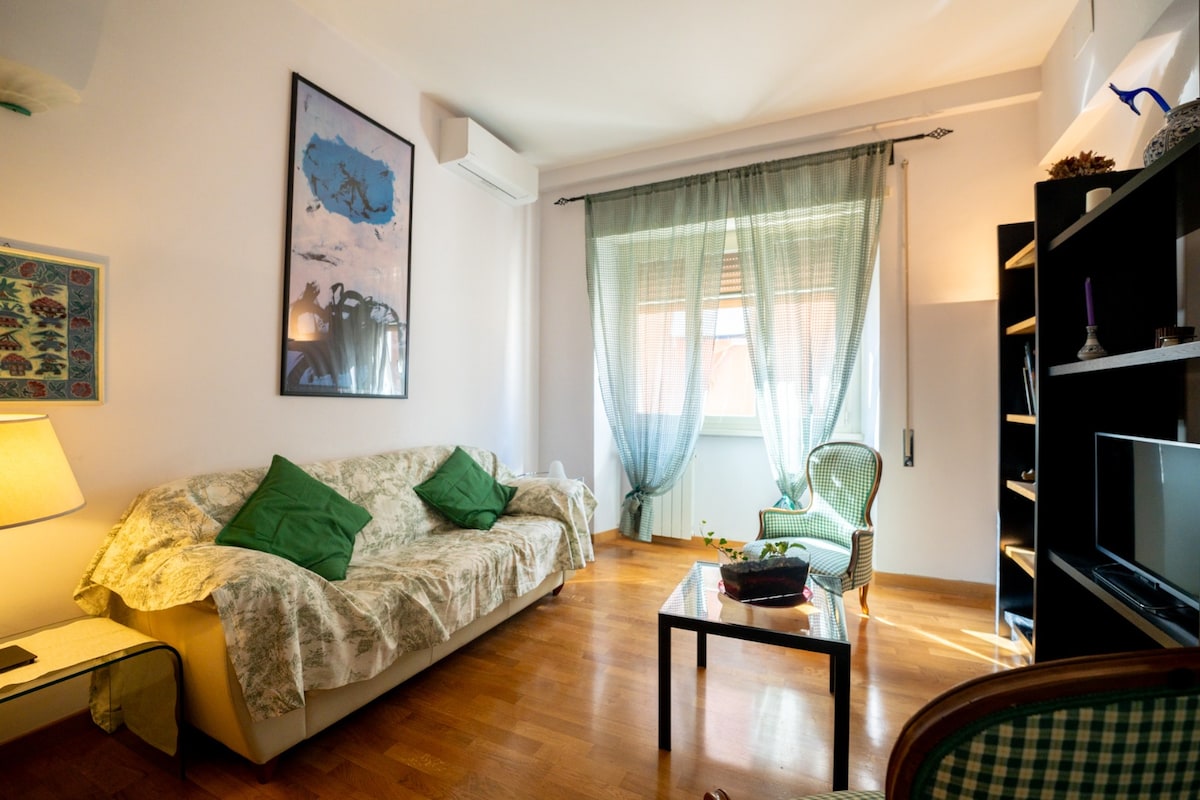 Ako tražite originalan, udoban i intiman smještaj u kojem ćete se osjećati ugodno, onda ste izabrali pravo mjesto. Bićete u istorijskoj četvrti Rima, Montesakro, rezidencijalnoj i autentičnoj sa mjestima otvorenim do kasno, zanimljivim za fotografisanje i dobro povezani sa centrom javnim prevozom. Velika spavaća soba s kutkom za fitnes/jogu, veliki dnevni boravak s kaučem na razvlačenje, pametni TV, Wi-Fi, besplatan Netflix, super opremljena kuhinja i potpuno opremljeno kupatilo. .