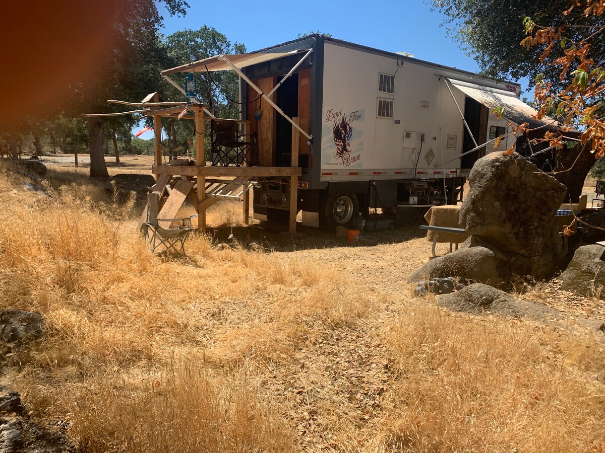 Tražite li noćno posmatranje zvijezda i zalaske sunca koji će vam oduzeti dah? Pozivamo vas da uživate u panoramskim pogledima na Inspiration Point, dok uživate u spokoju podnožja Sierra Nevada. Uživajte u ovoj potpuno renoviranoj kamp-prikolici koja se nalazi na više od 6 hektara i ušuškan je među hrastovima. Imaćete cijeli smještaj samo za sebe, uključujući naše rustično dvorište inspirisano rančem sa vanjskim sjedištima i potpuno novim roštiljem! Savršen odmor za samca ili par.
