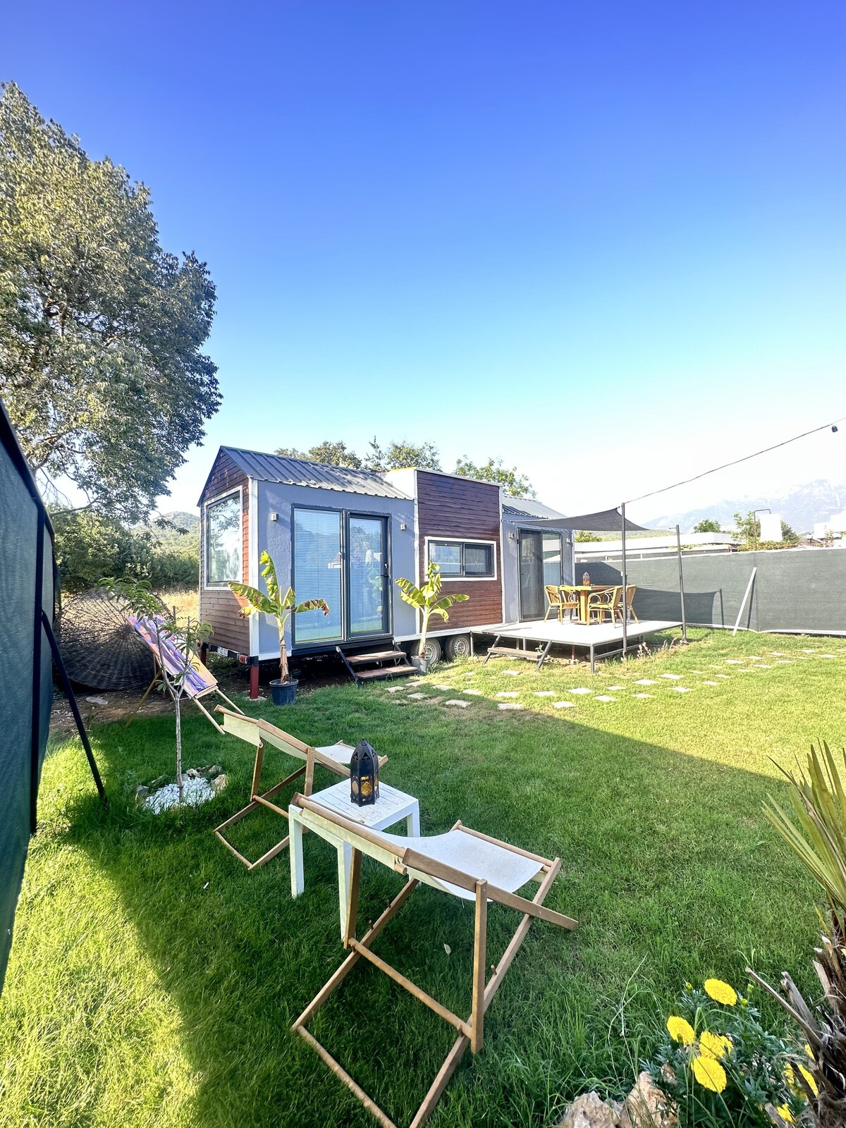 7 min walk to Seferihisar center; 5 min by car to Akarca & Akkum beaches, Teos Ancient City, the Marina and Kaleiçi. Surrounded by mandarin fields, Ruby Caravan is fixed in place with full water and sewer connection and 24/7 hot water. The private area is a camellia in summer and a closed winter garden with a fireplace stove in winter. Shared kitchen & BBQ. Pet-friendly, fenced, safe and family-friendly.