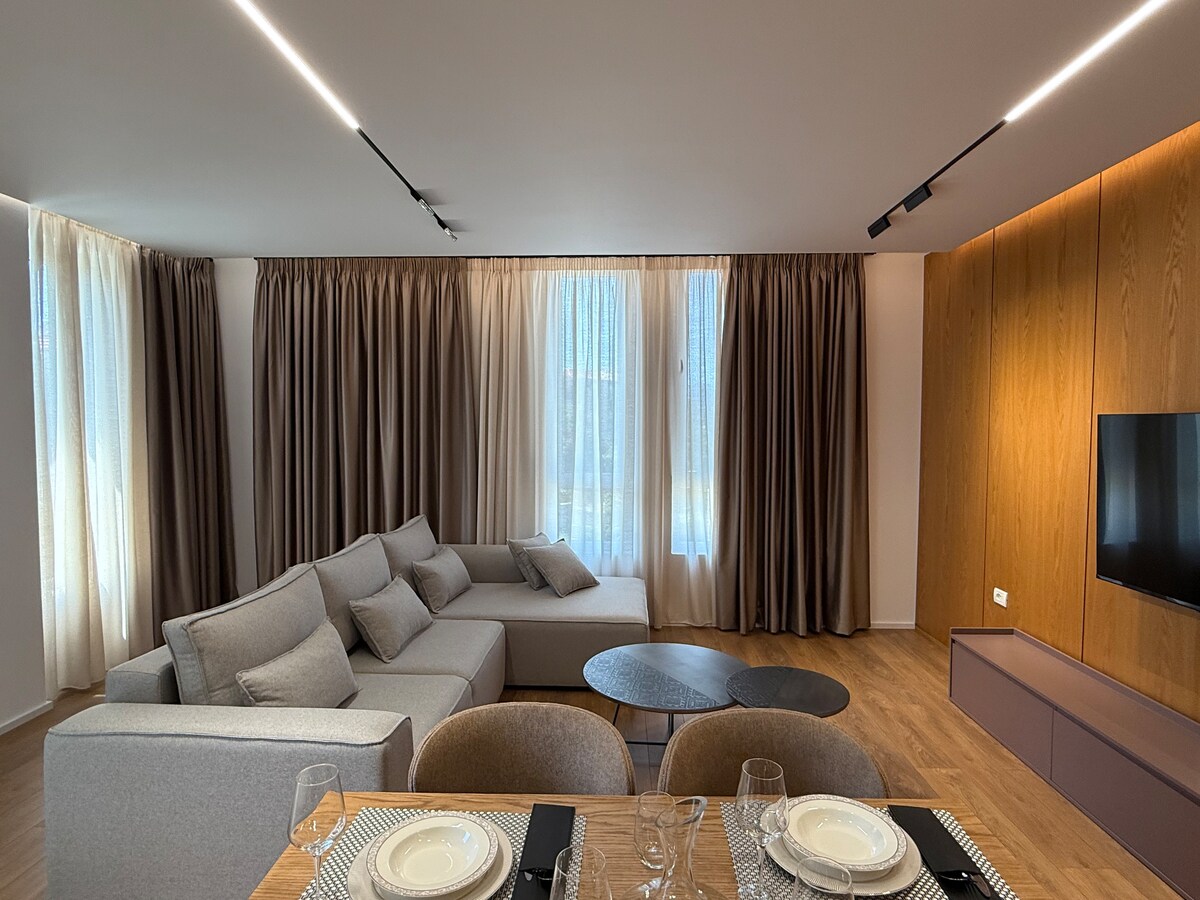 Novi i moderan 1-sobni stan, potpuno opremljena kuhinja, dnevna soba sa sofom na uglu koja čini bračni krevet. Veoma brz Fibre Optic Wi-Fi internet sa brzinom od 100 Mbps/ 100 Mbps (preuzimanje i otpremanje) idealan za sve kojima je potreban brz i stabilan internet za rad onlajn, video konferencije, igranje igrica itd. Led TV sa više od 100 najpopularnijih kanala, klima-uređajem, mašinom za pranje veša, fenom za kosu, peglom i svime što vam je potrebno za prijatan boravak.