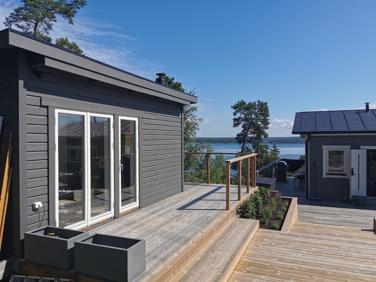 Moderno uređena gostinjska kuća u skandinavskom stilu, smještena s prirodom iza ugla u Stokholmskom arhipelagu. Kuća ima kuhinju, kupatilo, potkrovlje i spavaću sobu. Neposredno uz kuću se nalazi bazen i veliki dnevni prostori. Ovi prostori se dele sa glavnom zgradom (domom porodice domaćina). 30 minuta od Stokholma, i samo nekoliko stotina metara do pristaništa i kupališta. Autobuska stanica sa direktnim autobusom za Stokholm, 100 metara od kuće. Završno čišćenje je uključeno u cenu. Bazen otvoren između juna i septembra