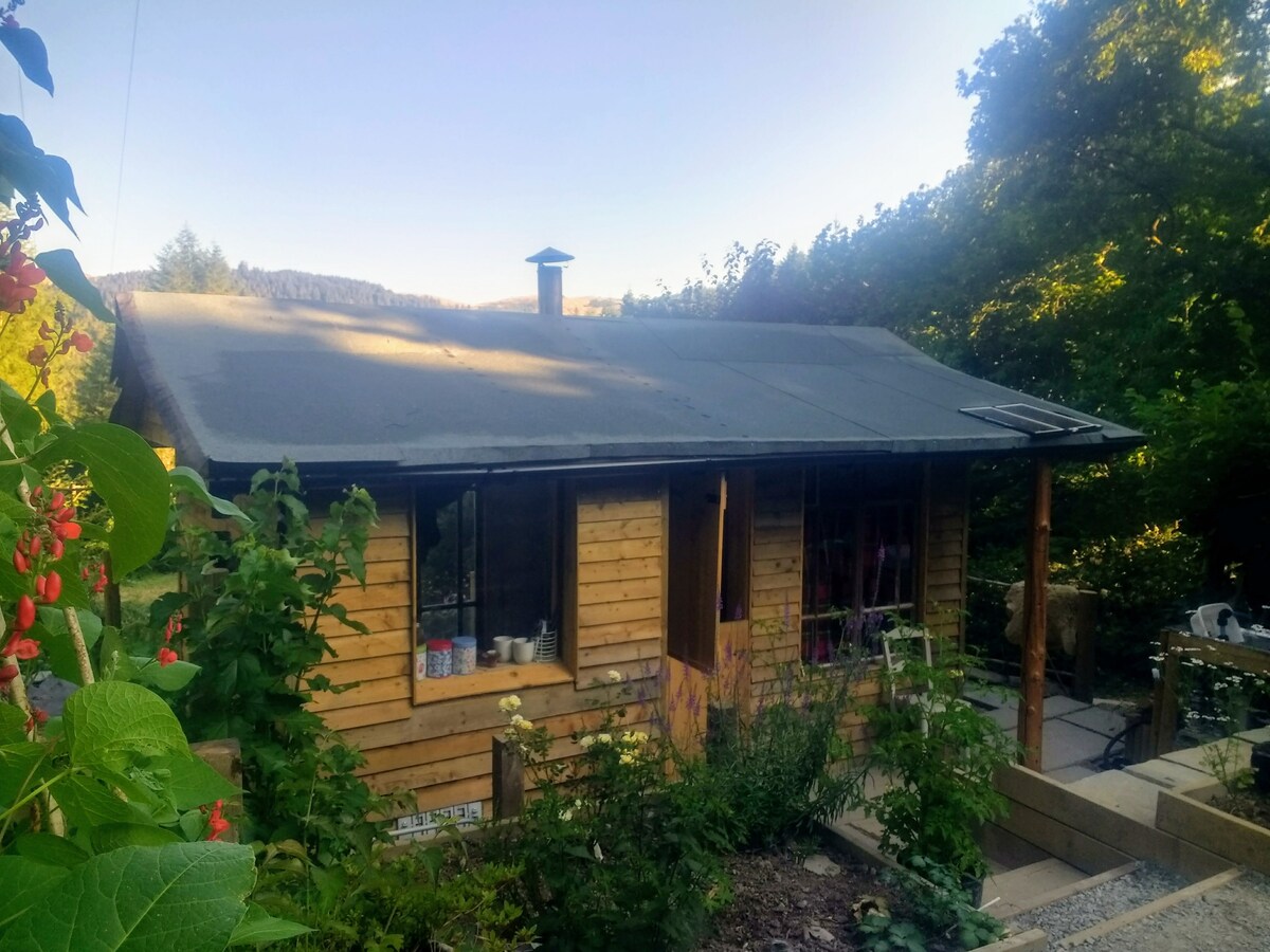 Ideal tiny-house for Autumn leafy break in Artists Valley. Cabin is a tranquil getaway for bird & nature lovers. A relaxing digital-detox. Explore southern Snowdonia where gentle hills meet the mountains. Designed and insulated to a super high-spec with wood-burning stove. Detached but near to our storage barn. Dark sky gazing from the deck. Telescope. Footpaths in the Celtic rainforest & the Afon Einion are minutes away with pools and waterfalls. Wild swimming. Beaches. See 'The Space'.