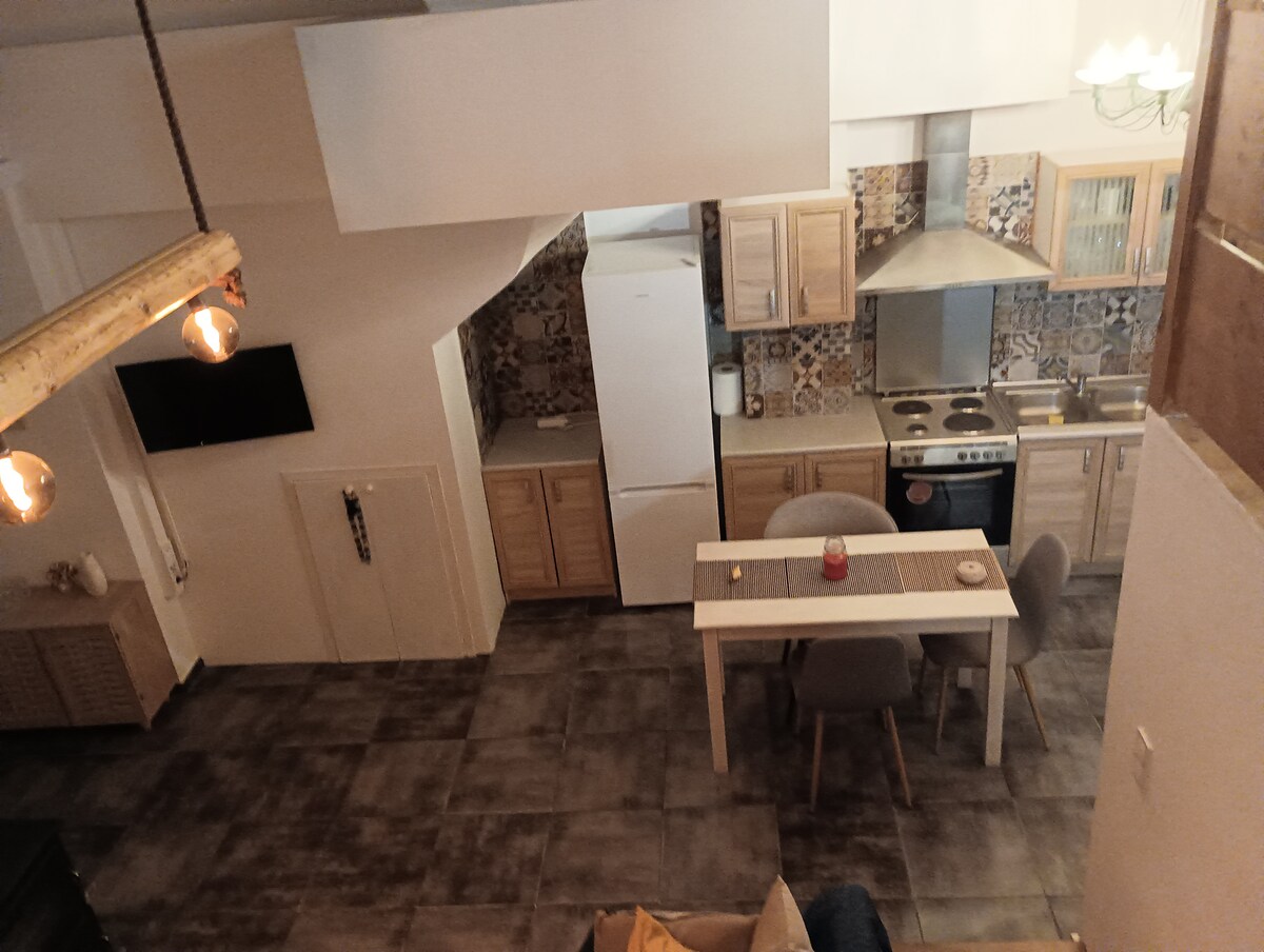 Yaya ‘s (grandmother’s) house, is located on the main road of the village and is easily accessible by car, with FREE parking on the street, within a short distance from the house. The house is 60 square meters (m²) with a mezzanine 20 m². There is a yard outside, where a beautiful path will lead you to the herbal garden and a great view of the mountains, where you can spend a lot of time smelling different types of herbs. The lemon tree in the center of the garden will welcome you.