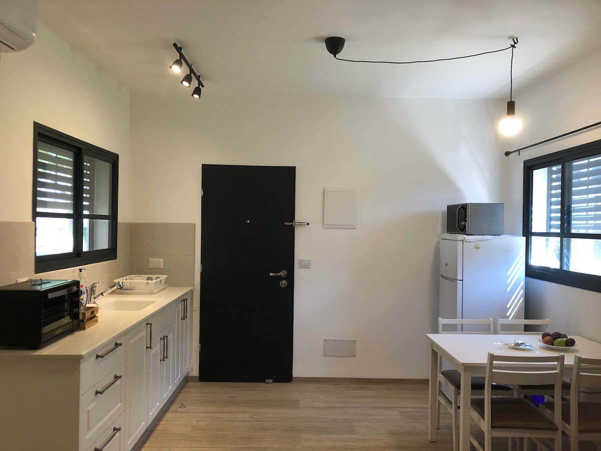 Kutak tišine, prirode i ljubavi. Opustite se u našem mirnom, elegantnom prostoru – elegantnoj jedinici u srcu kibuca, okruženoj zelenilom i šarmom. Jedinica se nalazi na drugom spratu, iznad našeg doma, koji od sveg srca ugošćava, sa potpunom privatnošću i toplom atmosferom. Na dodirnoj udaljenosti od pacijenta, na periferiji kibuca, čeka vas kvalitetno vrijeme za par – u drugačijem vazduhu, drugačijim tempom, u drugačijem stilu