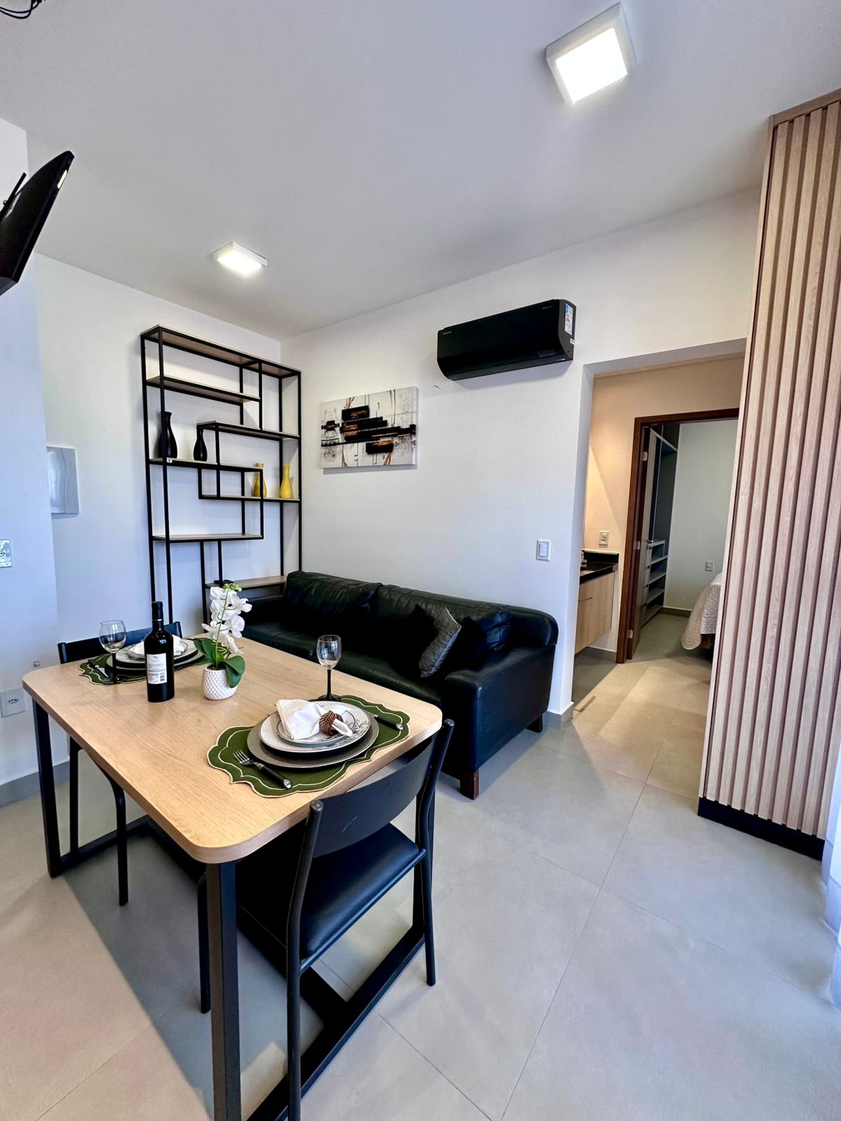 Cerque-se de estilo neste espaço excepcional. Selfcheckin dando acesso a um ambiente todo mobiliado com produtos de altíssima qualidade geladeira, fogão cooktop, maquina de lavar, microondas, utensílios domésticos para você se sentir na sua casa, iluminação aconchegante, ar condicionado na sala e quarto, ferro de passar roupas, secador, televisões smart e wifi de alta velocidade!Acompanha toalhas e roupas de cama sempre limpas
