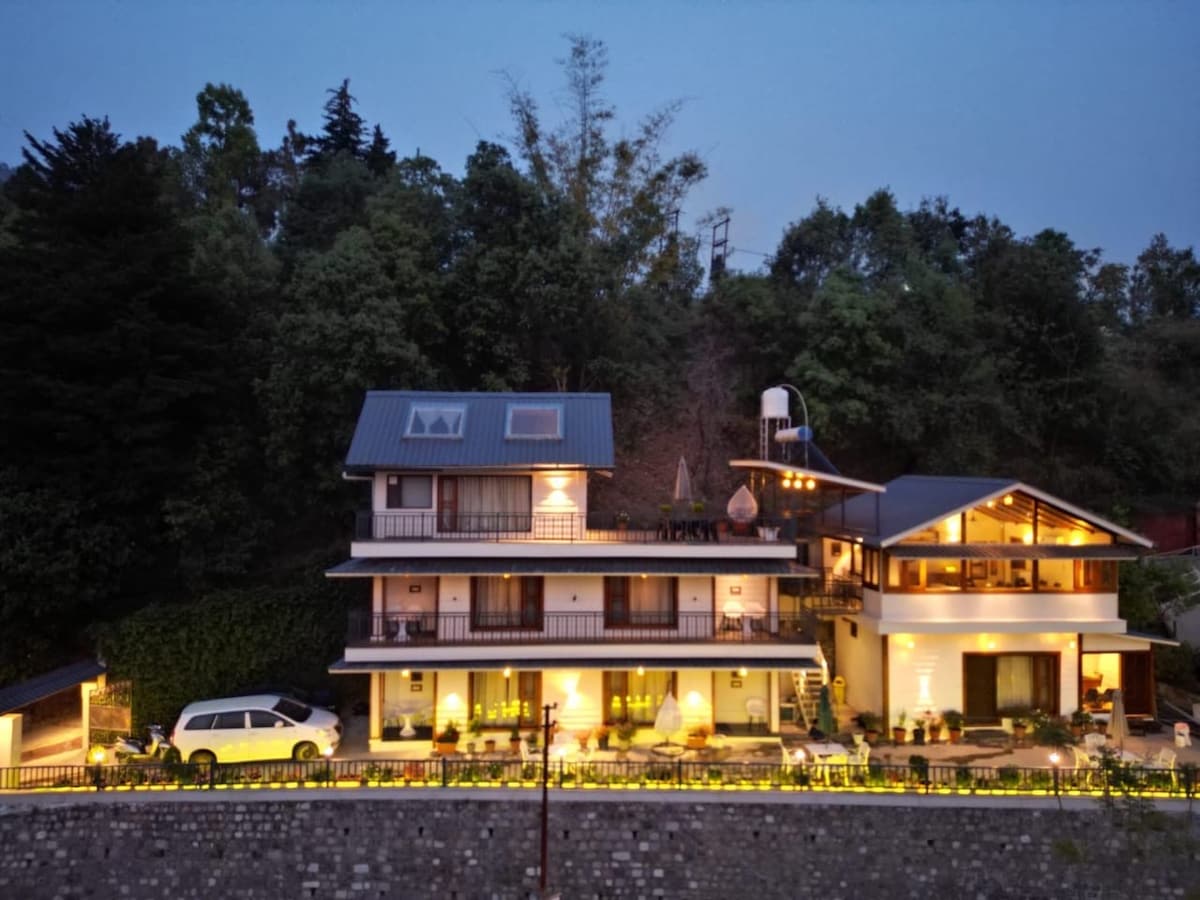 Pineview A-Frame (potkrovlje) je udobna drvena vila s pogledom na jezero, savršena za miran i romantičan odmor. Sa potkrovljem sa dva bračna kreveta, privatnim kupatilom i privatnom terasom sa prelijepim pogledom na jezero sa dvije strane. Okruženi prirodom, uživajte u tihim trenucima i ukusnoj indijskoj, kineskoj i lokalnoj kuhinji u našem udobnom kafeu. Idealno za parove, porodice ili prijatelje koji traže miran odmor pored jezera.