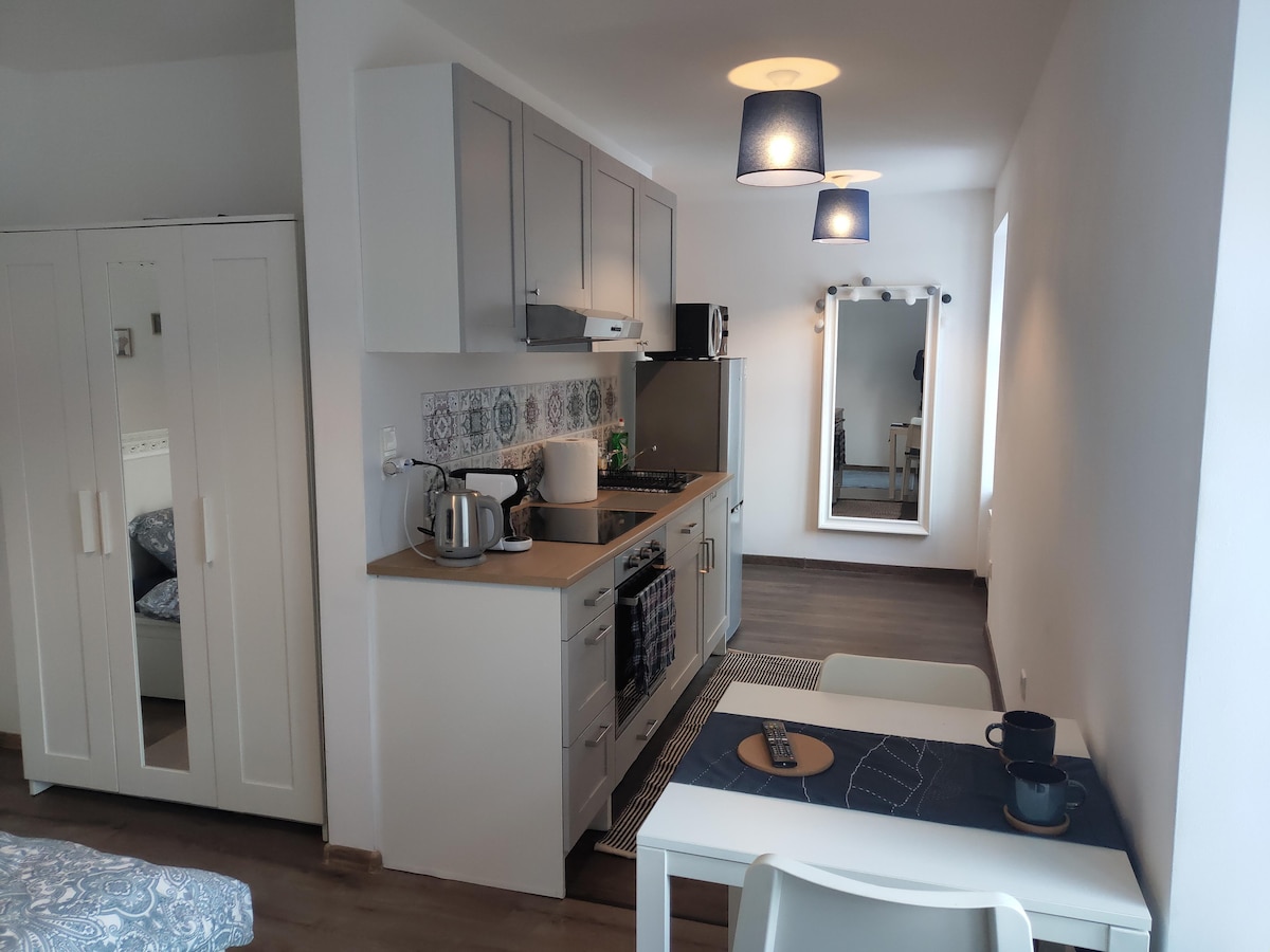 Stan se sastoji od jedne spavaće sobe i prostrane dnevne sobe. Dnevna soba sa kuhinjom je savršena za opuštanje nakon dugog dana. Balkon/terasa je savršen za jutarnji čaj ili kafu. Nalazi se u sveže razvijenom poslovnom području 10 minuta vožnje do centra grada i 10 minuta hoda do autobuske ili tramvajske stanice. U blizini stana nalazi se i restoran, tržni centar i igralište za decu. Stan je pogodan za parove, porodice sa decom i prijatelje.