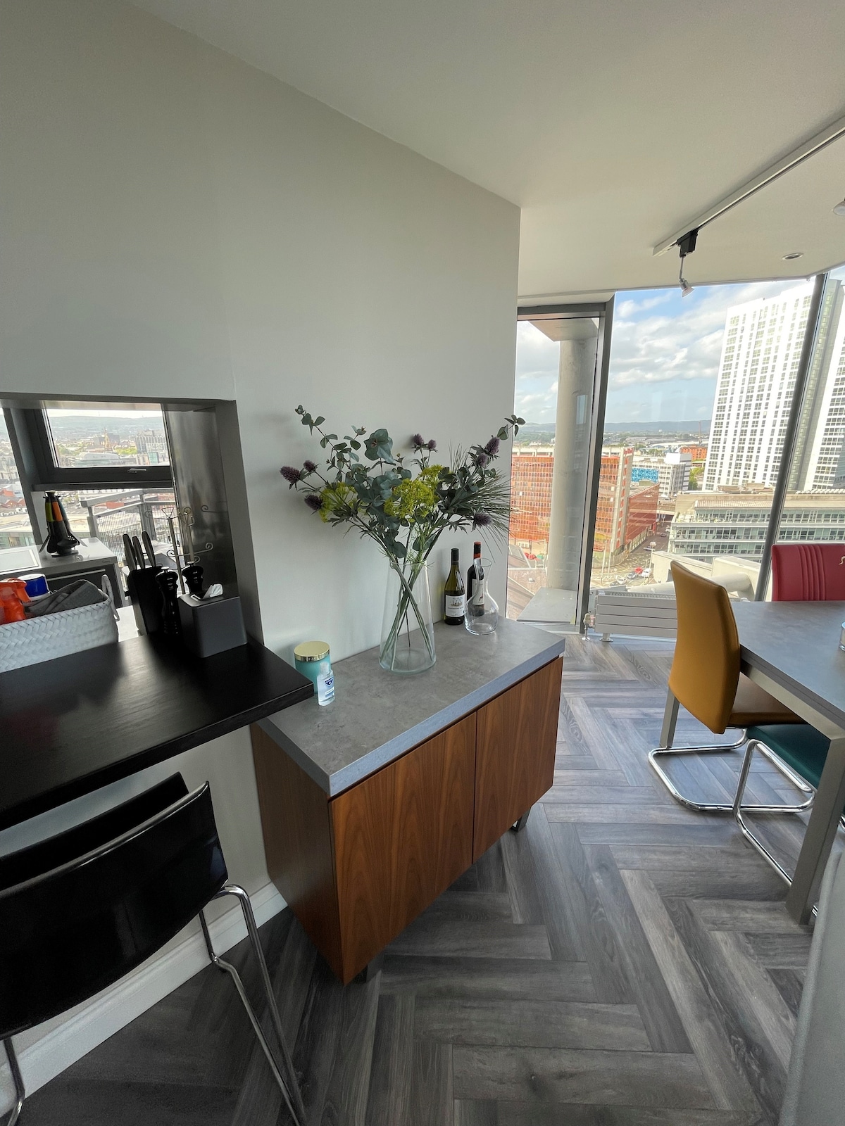 Beautiful 3 Bedroom Belfast Penthouse Apartment by Ultra Urban Belfast. Botanic Ave, City Centre. Stunning Views Over The City. Wrap around balcony. Free Parking. Perfect vacation rental, office, accommodation combination, great for families, friends, couples and business also. 2 Bathrooms. Bright modern Lounge with Views to Die For! Free Wi-Fi. Secure Free underground Car Park. EV Charge 300m. Beside Botanic Train Station, Belfast Bikes, Taxi, Bus, Cafes, Bars, Shops, QUB, Botanical Gardens.